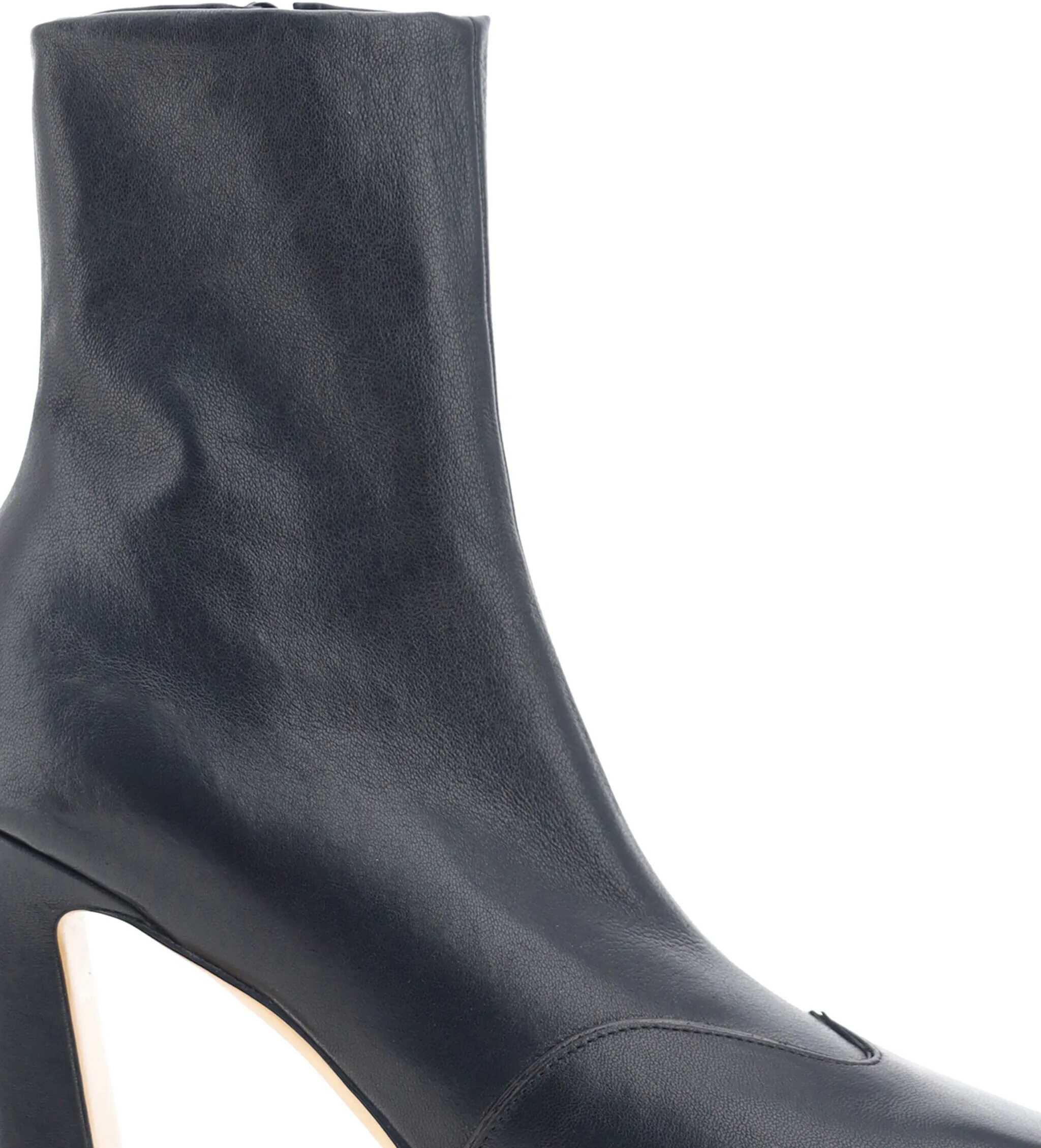 Khaite's Nevada Ankle Boots stand out for their bold and contemporary design. Featuring a contrasting toe and a geometric heel that gives a sculptural touch, they have a practical side zipper closure and ankle zippers for an easy and secure fit. A model with a bold and sophisticated style, perfect for completing modern and sophisticated looks.