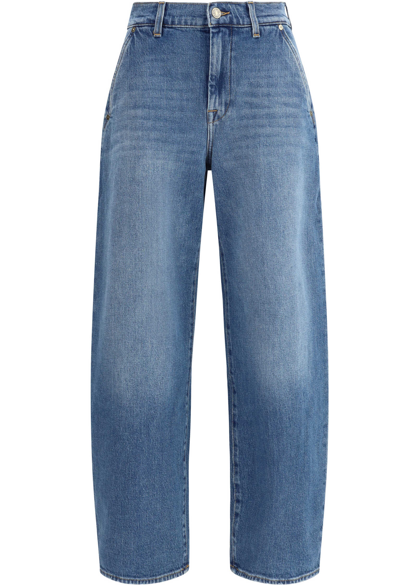 The Bonnie Jeans by 7For feature a mid-rise and a loose, wide leg for a relaxed yet sophisticated look. The classic five-pocket design is complemented by a zipper and button closure, making this versatile and suitable for a variety of styles.