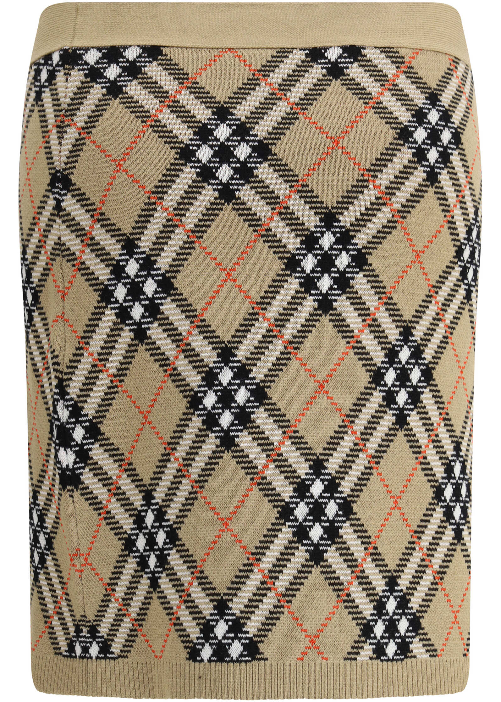 Burberry's wool-blend Miniskirt features refined Burberry Check embroidery that covers the entire surface, lending a touch of timeless elegance. The elastic waist ensures comfort and fit, while the ribbed hem adds a stylish detail. Unlined, it is ideal for wearing with practicality and lightness.
