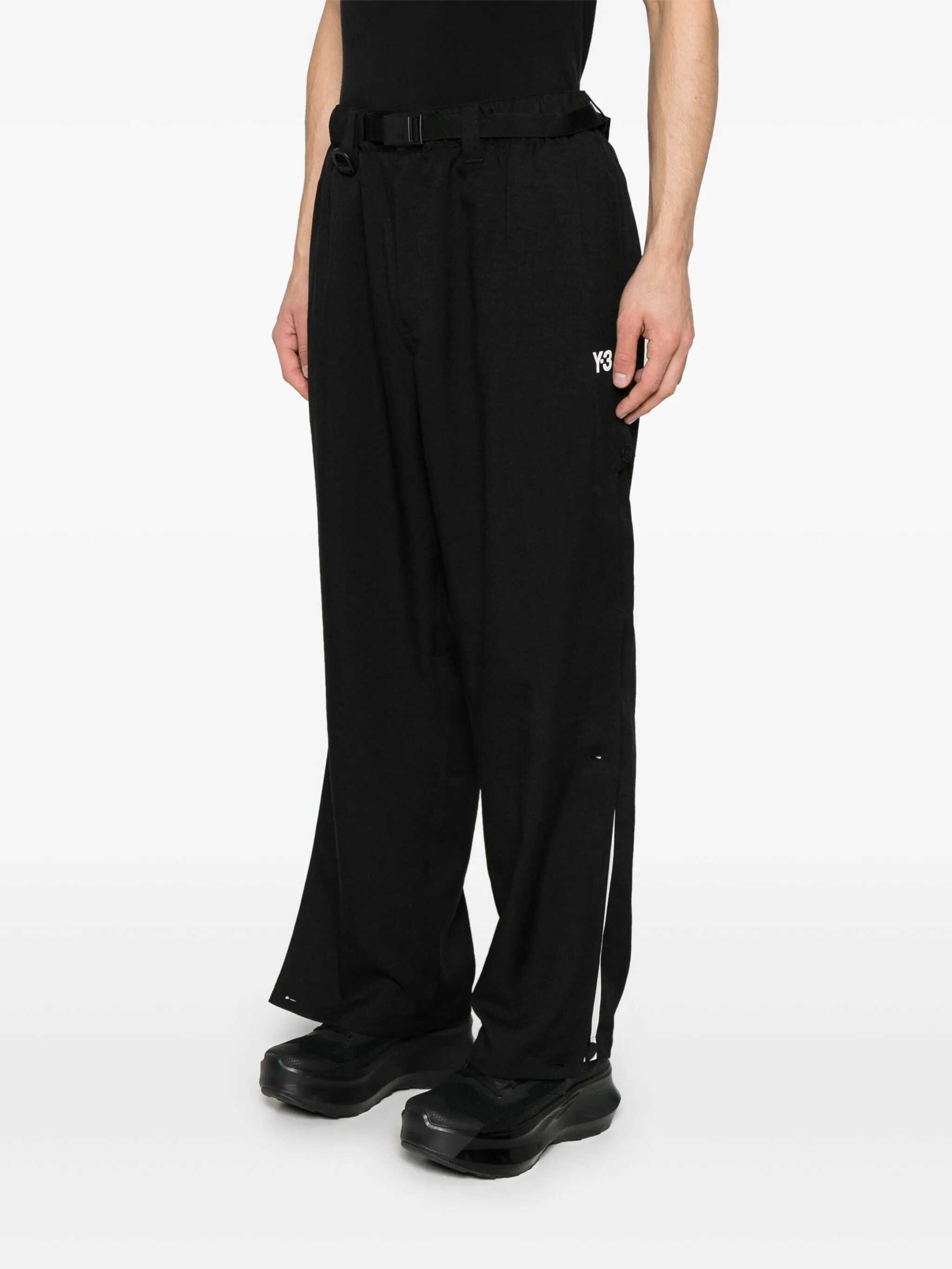 Y-3 trousers made of black polyester. Button and zip closure. Belt loops. Belt with magnetic closure. Side welt pockets. Flap pockets with button closure. Side buttons. Contrasting embossed logo on the front.