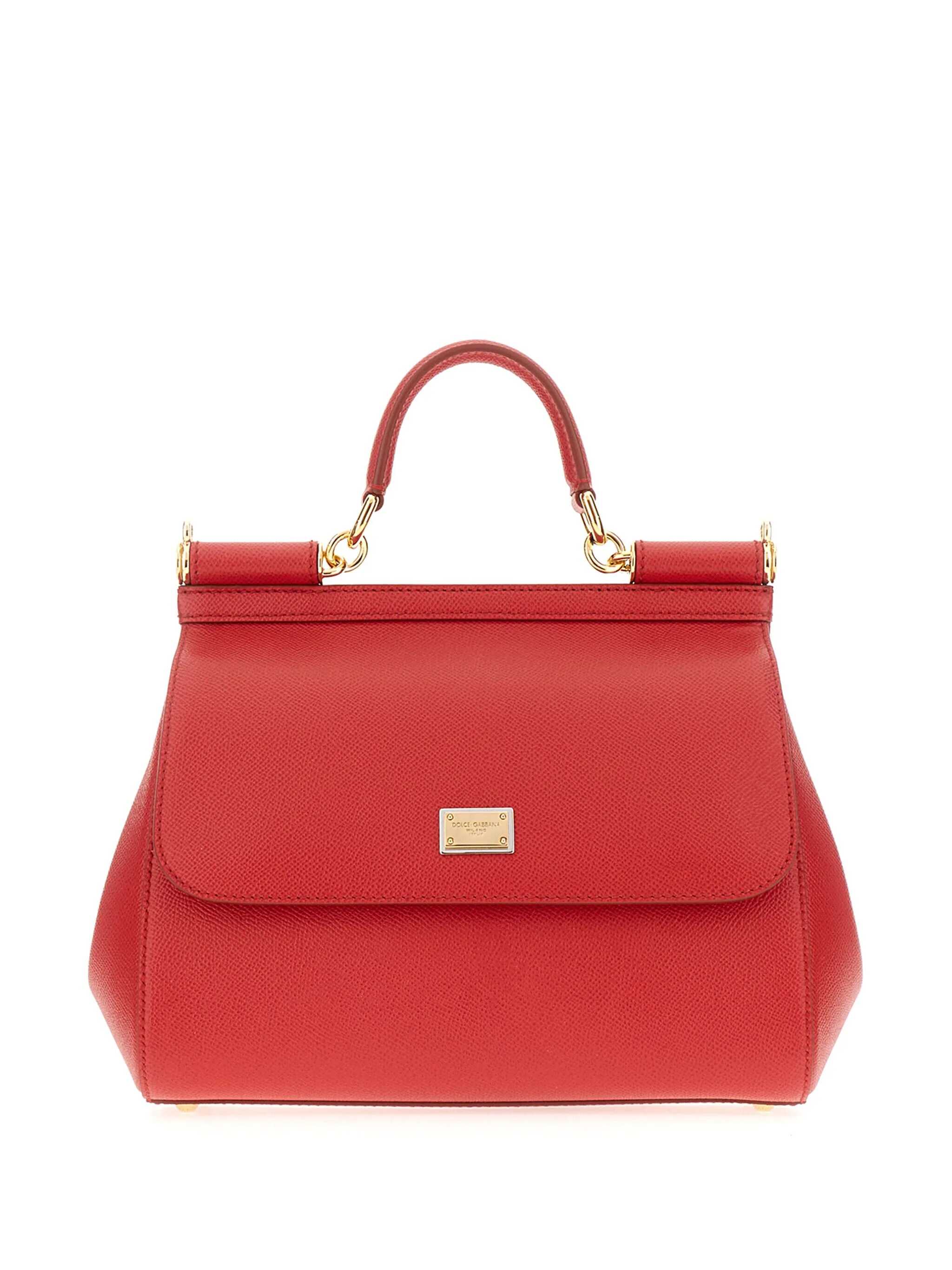 Handbag from the Sicily line in medium size in Dauphine leather Red Flap with hidden pressure closure Galvanic logo Leather handle Adjustable and removable shoulder strap Interior in leopard print fabric 1 internal zip pocket 1 internal slot pocket Dimensions: Length 25.5 cm Height 21 cm Depth 12 cm