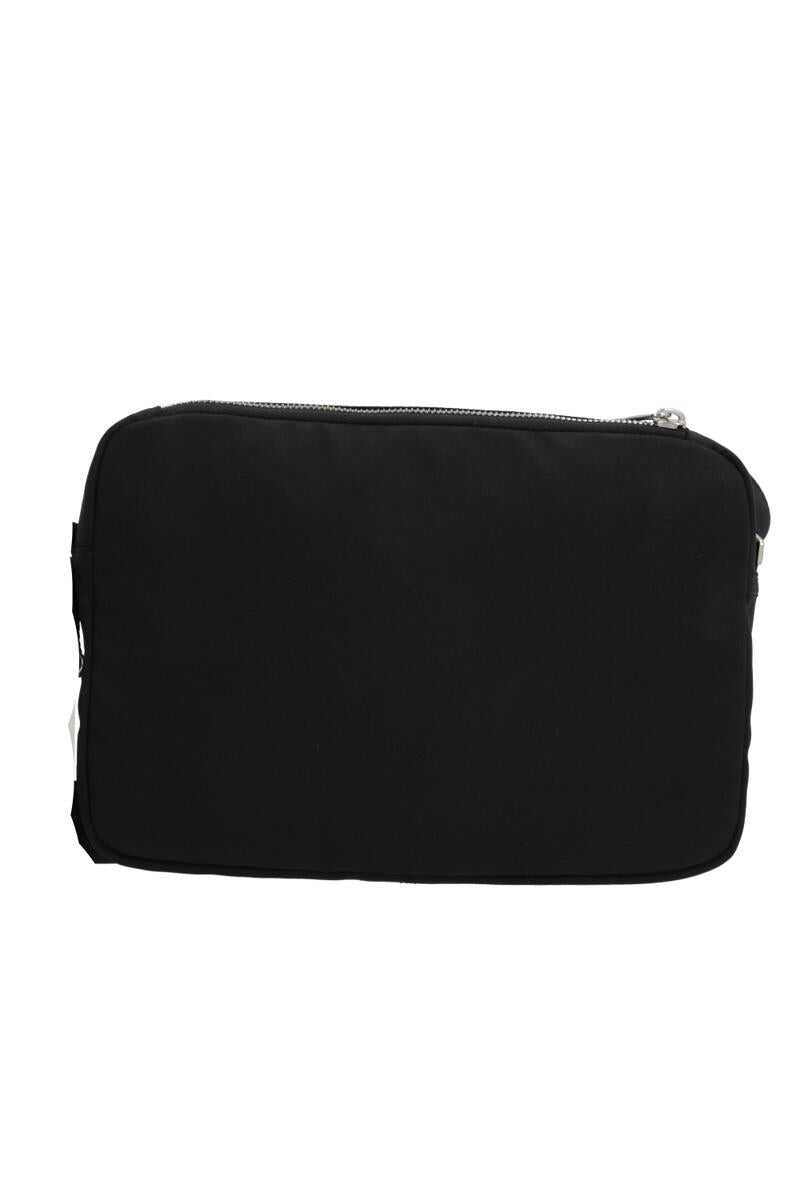 Burberry crossbody bag crafted from black nylon with a fil coupé Knight Stamp on the front. Featuring silver-tone hardware, double-zip closure, and an adjustable logo-jacquard fabric strap. The black nylon-lined interior includes two flat pockets. The design is completed with a rear zip compartment.