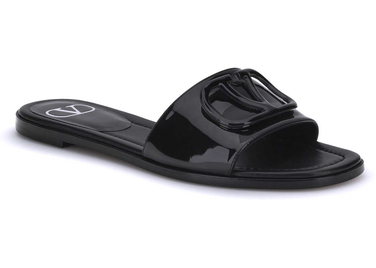 Valentino Garavani's patent leather VLogo slide Sandals combine modernity and elegance. Featuring the VLogo Signature cut-out detail in calfskin with mirrored piping, they are a refined and contemporary accessory, perfect to complete any look with style.