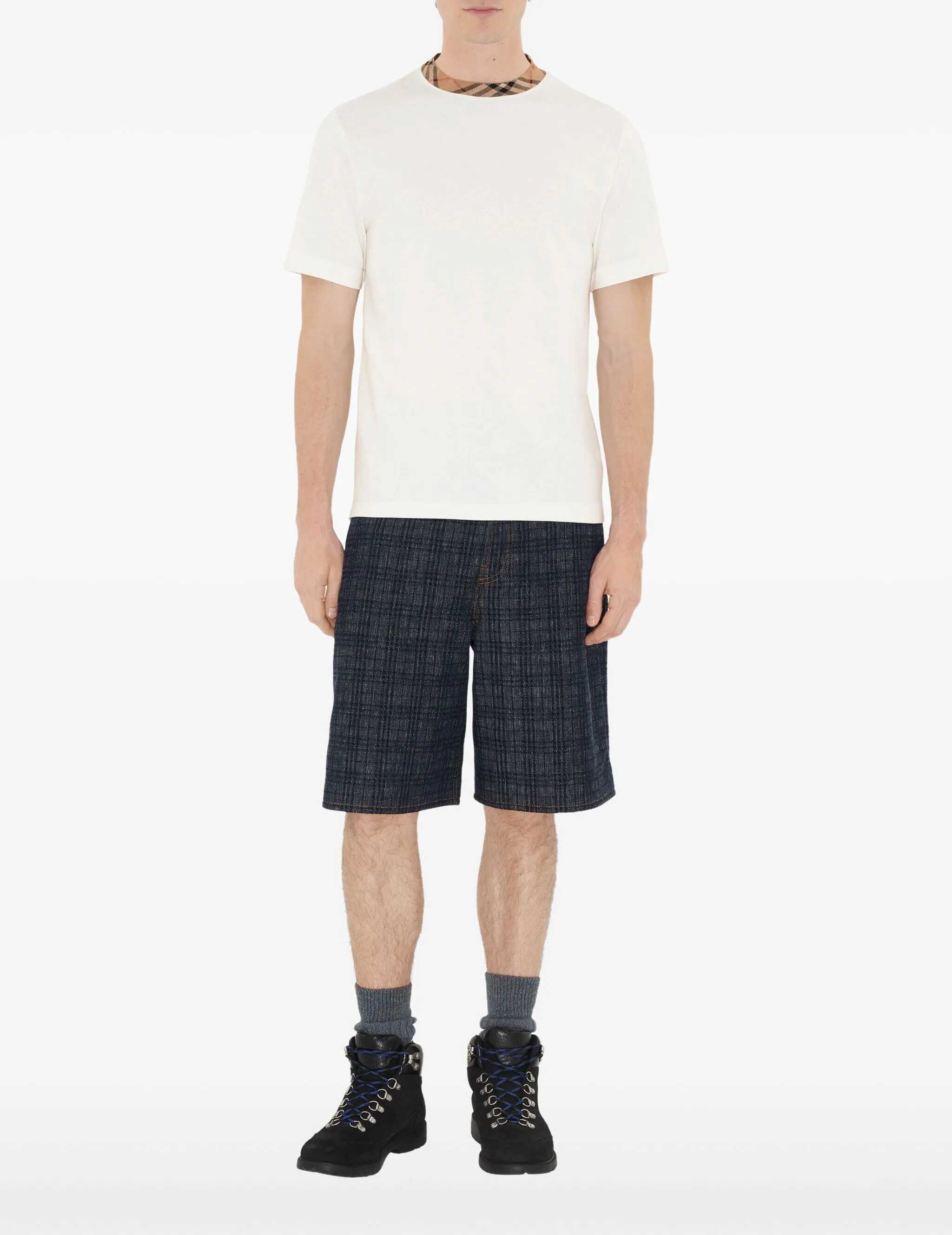 Burberry's cotton T-Shirt revisits essentiality with the unmistakable elegance of the British brand. Made of soft cotton, it features a monochrome pattern with minimal taste and a crew neck finished with the iconic Archive Check motif, a distinctive detail that recalls the Maison's stylistic heritage. A versatile and sophisticated garment, perfect for adding a heritage touch to any casual look.