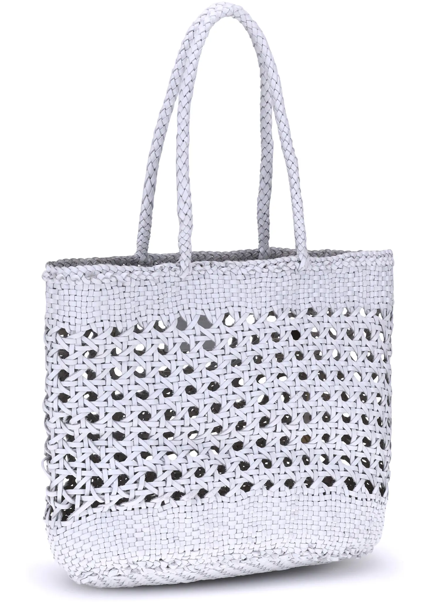 Dragon Diffusion's Eclipse Cannage leather Tote Bag is a handcrafted accessory with timeless style. Crafted with a refined perforated weave, it combines lightness and strength in an elegant and distinctive design. Featuring two hand-woven top handles, it offers a single spacious interior compartment, ideal for holding all your essentials with style and simplicity.