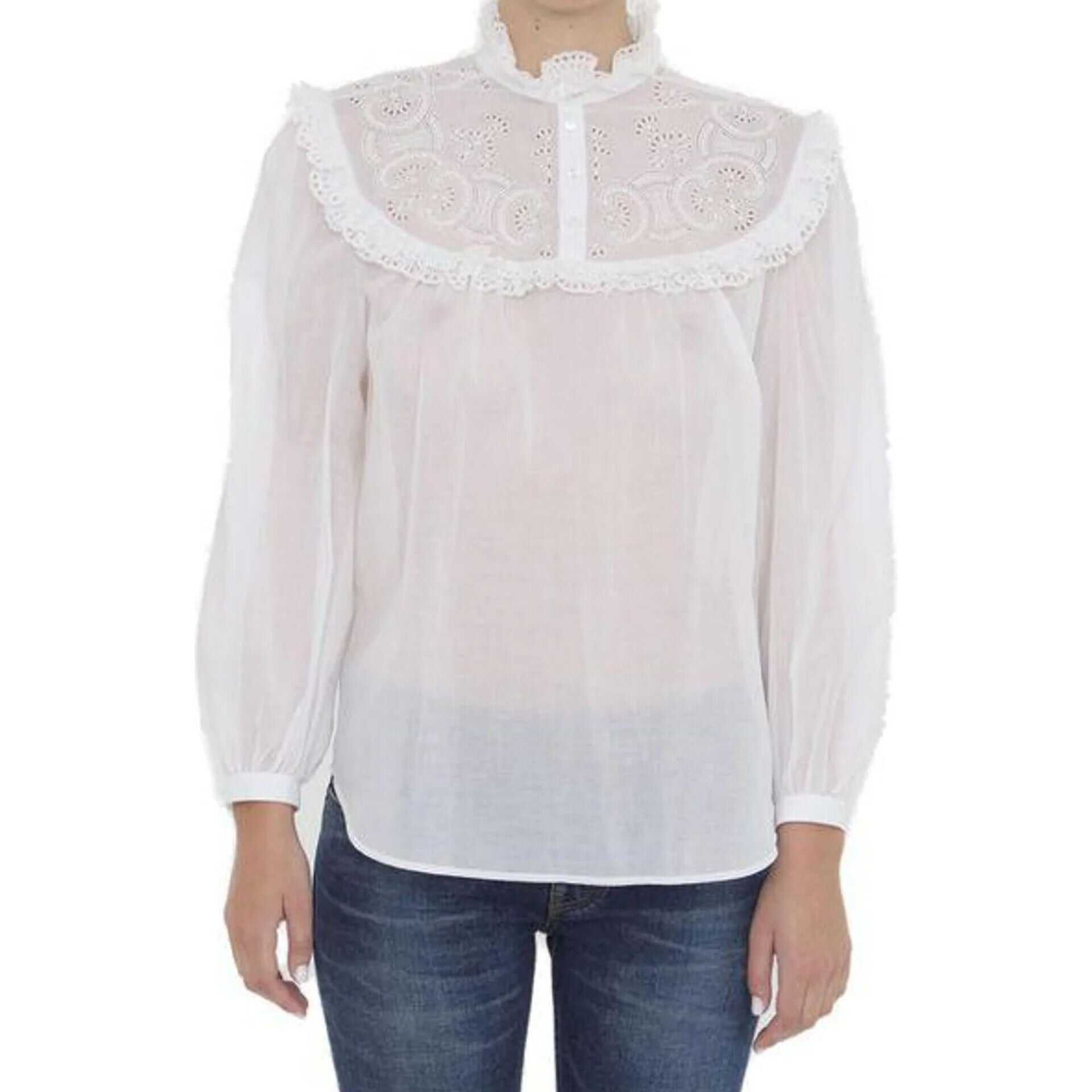 - Composition: 100% Cotton - Long sleeves - Buttoned cuffs - Semi-sheer cotton with lace inserts - Button closure on neckline - Curved hem for a flattering fit - English triomphe embroidery - Made in Portugal - Gender: WOMEN - MPN 2C02B455W_01RD - Barcode: 3616900587229 - Code: TOP NE 2 SH SS25 13022