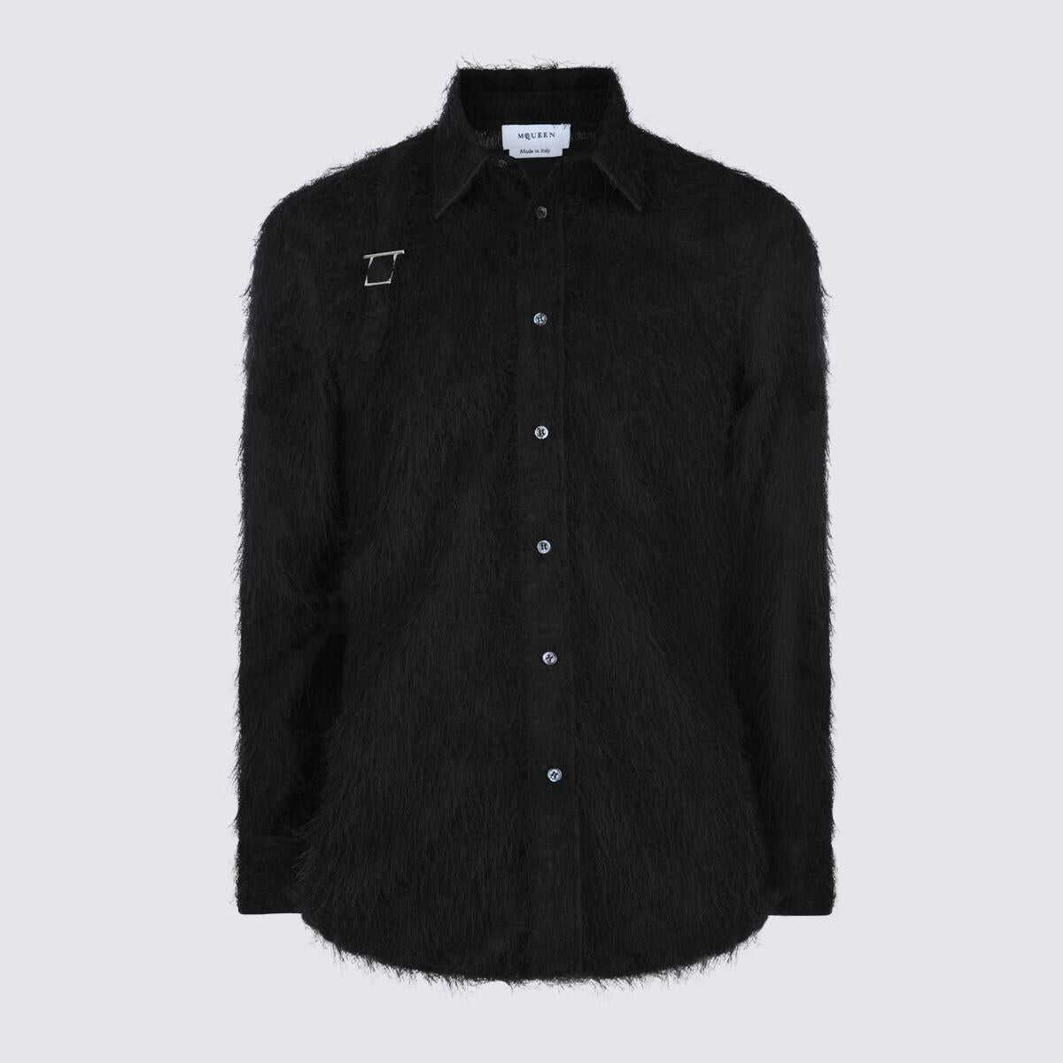 Black shirt from McQueen featuring long sleeves, shirt collar, buttons fastening and back detail.