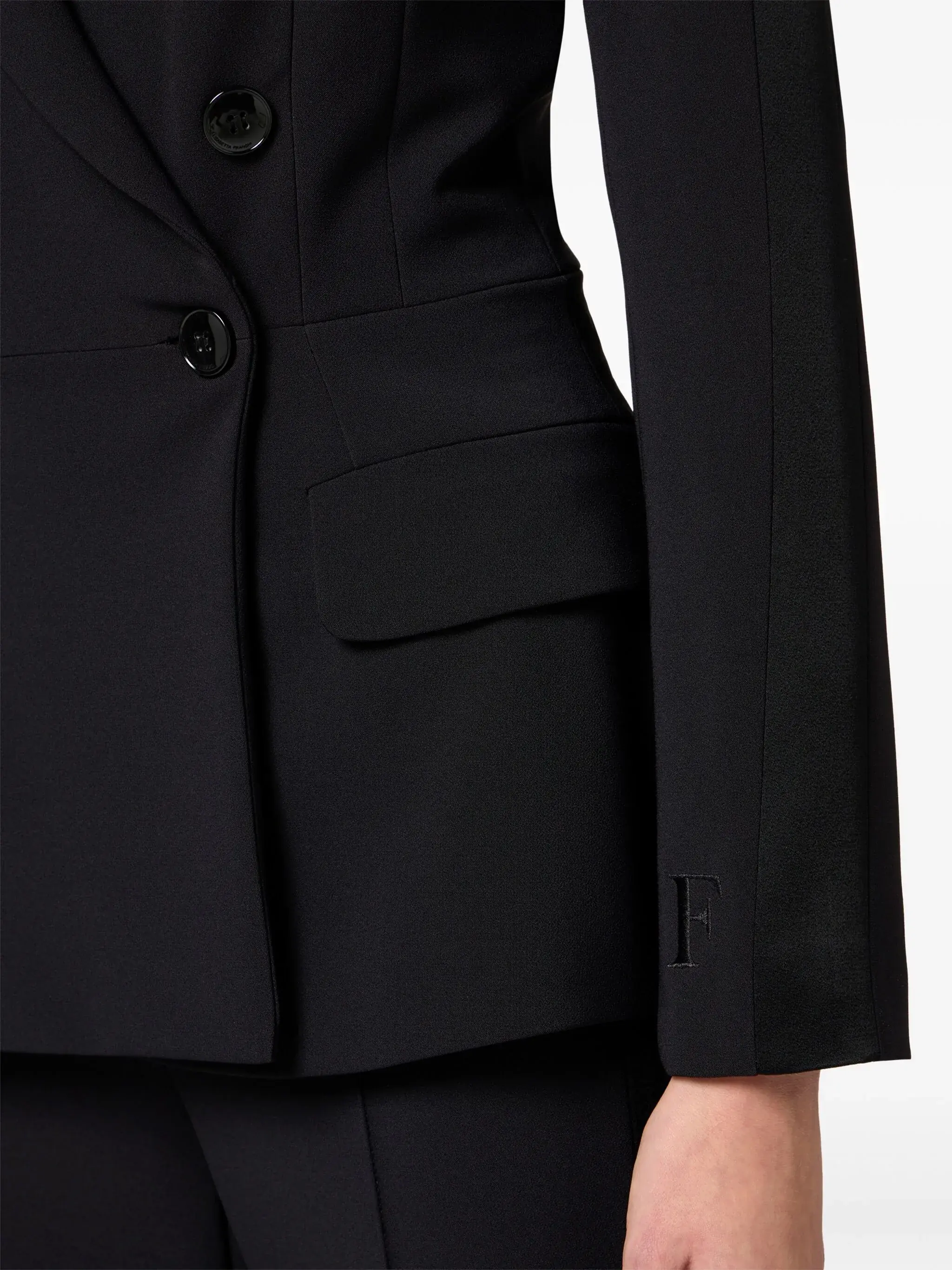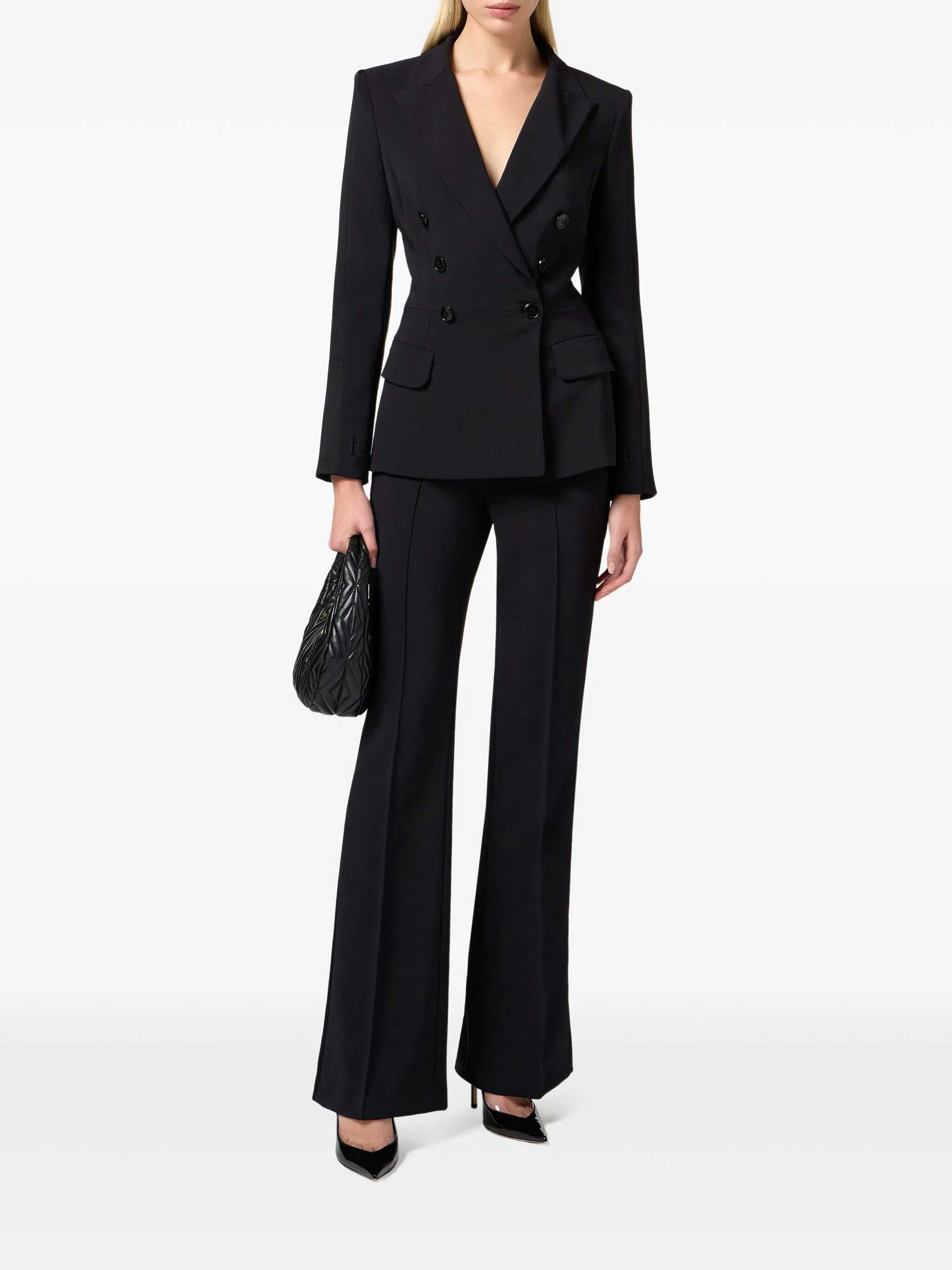 Black blazer from Elisabetta Franchi featuring long sleeves, double bresated fastening, pockets and regular vestibility.
