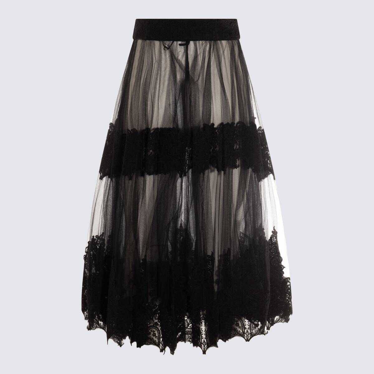 Black skirt from Elisabetta Franchi featuring zip fastening, midi length, laces detail and trasparence.