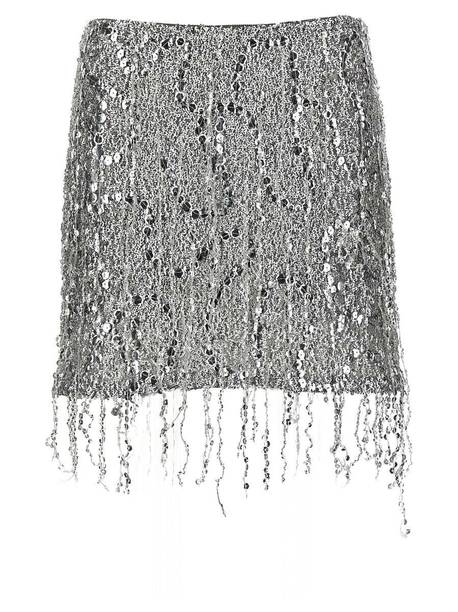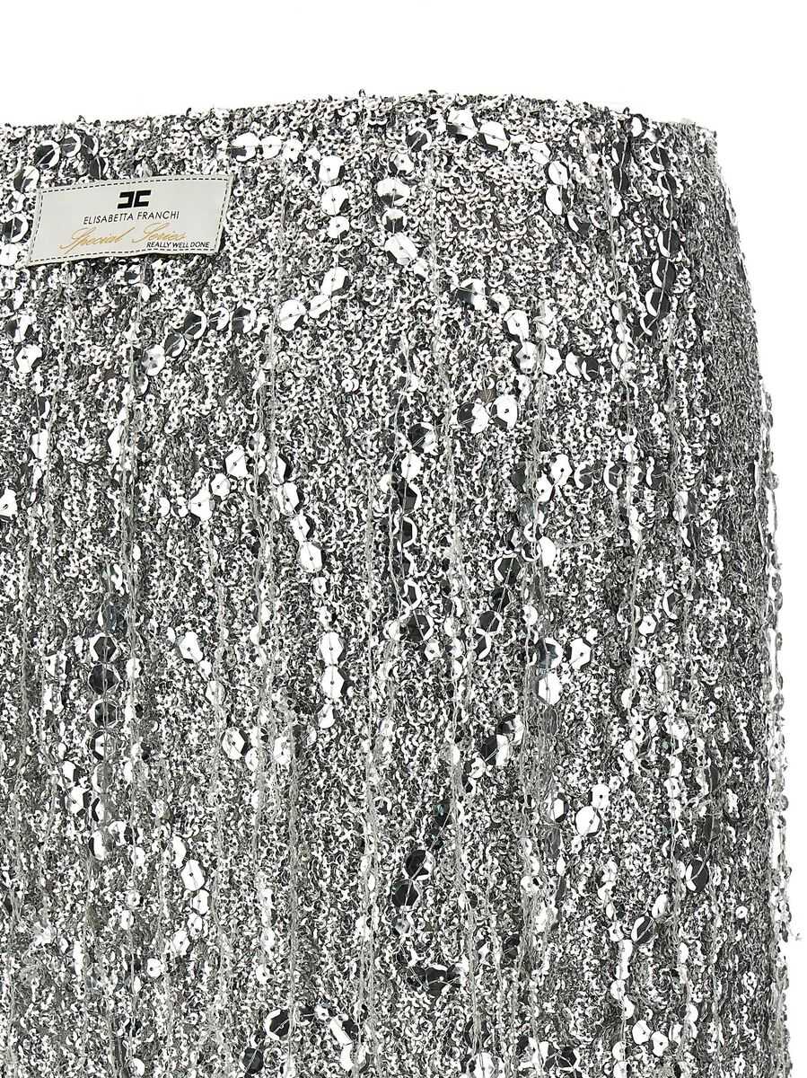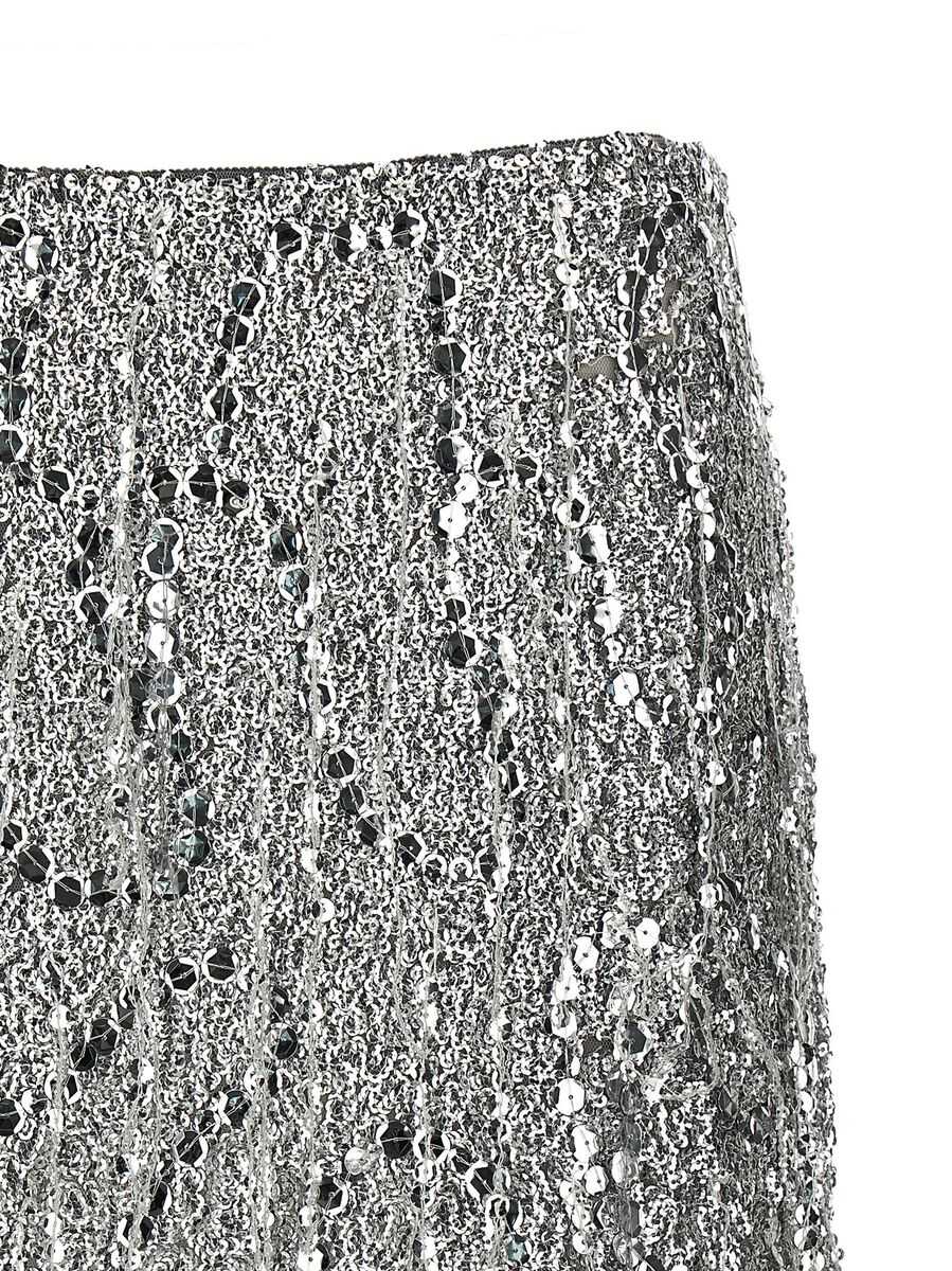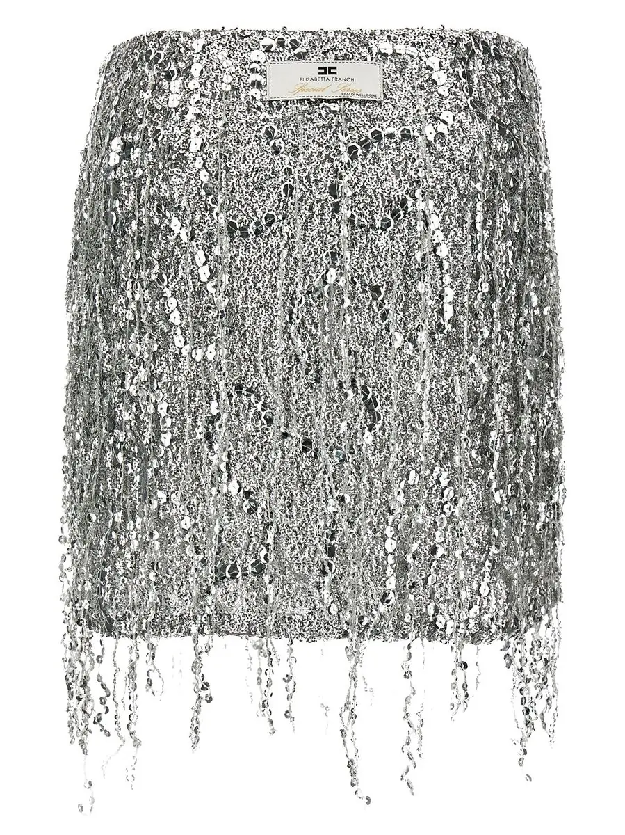 silver-tone concealed side zip fastening embroidered design sequin detailing low-rise straight hem thigh-length