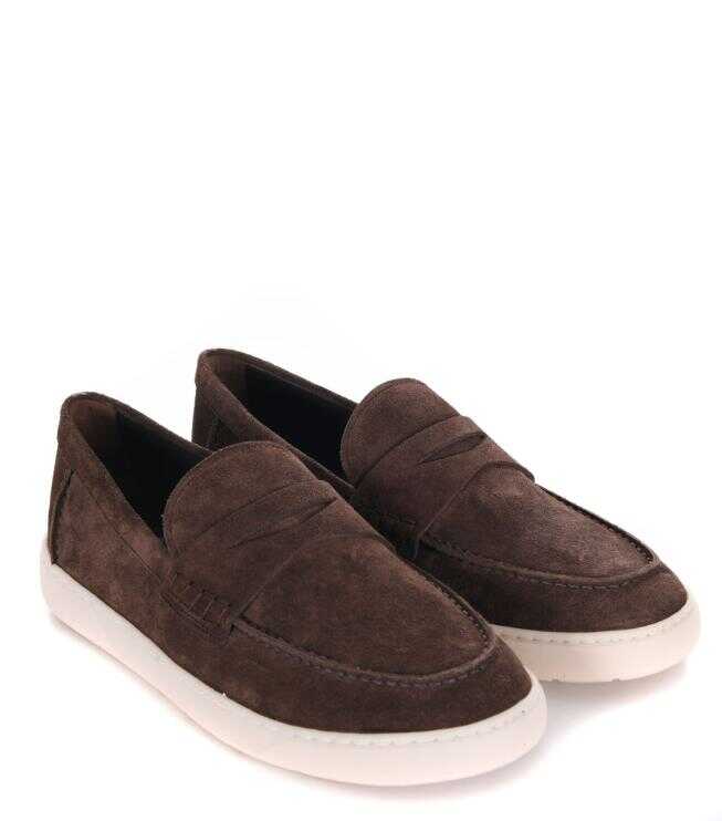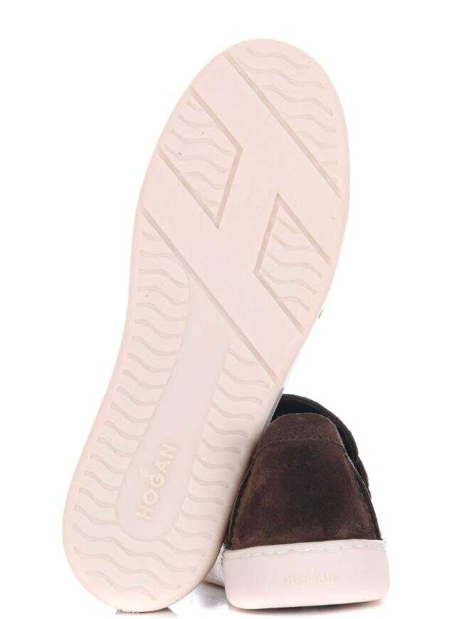 Hogan Loafers in Dark Brown Suede. Frontal Mask. Memory Foam Insole. 30mm Rubber Sole.