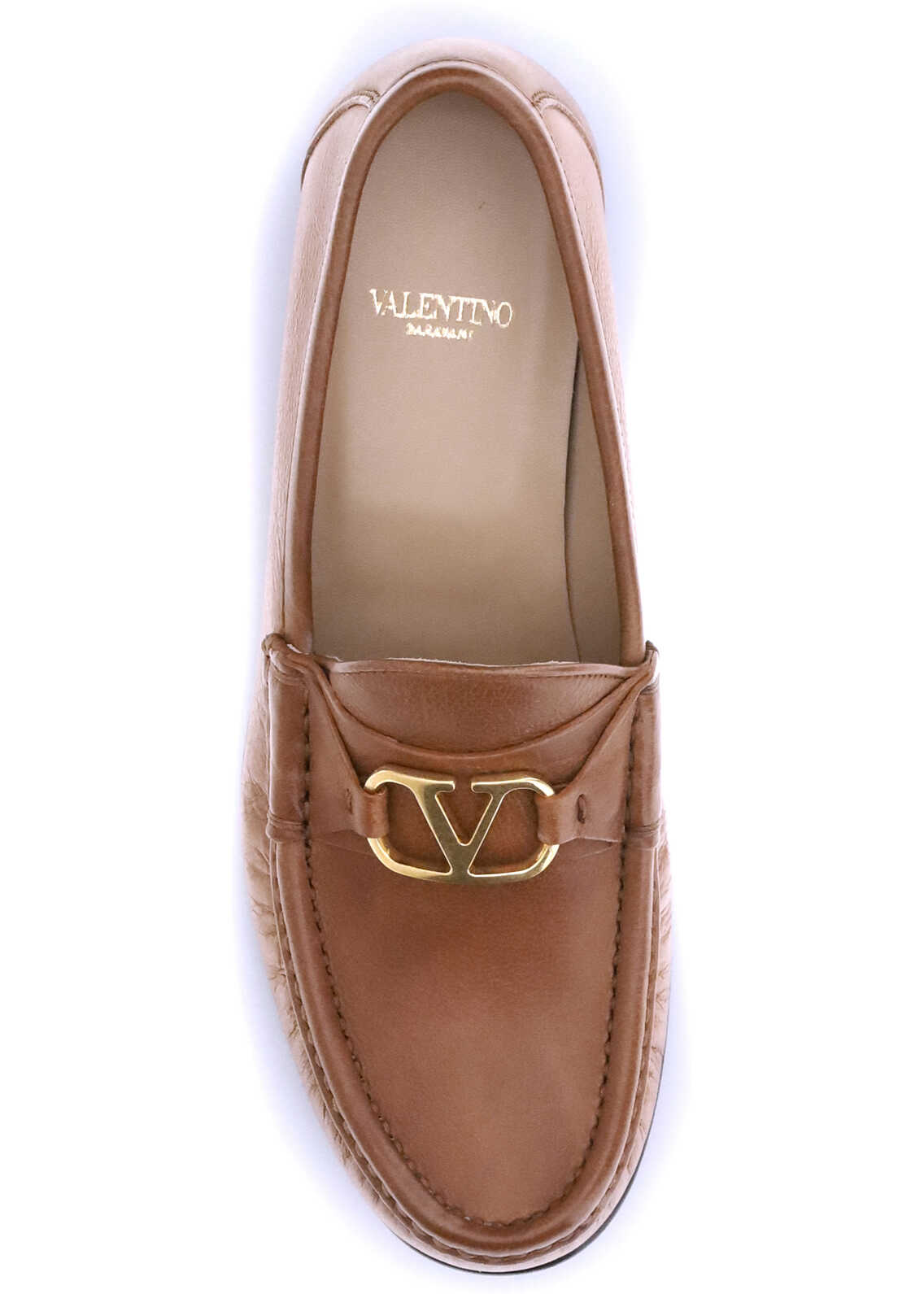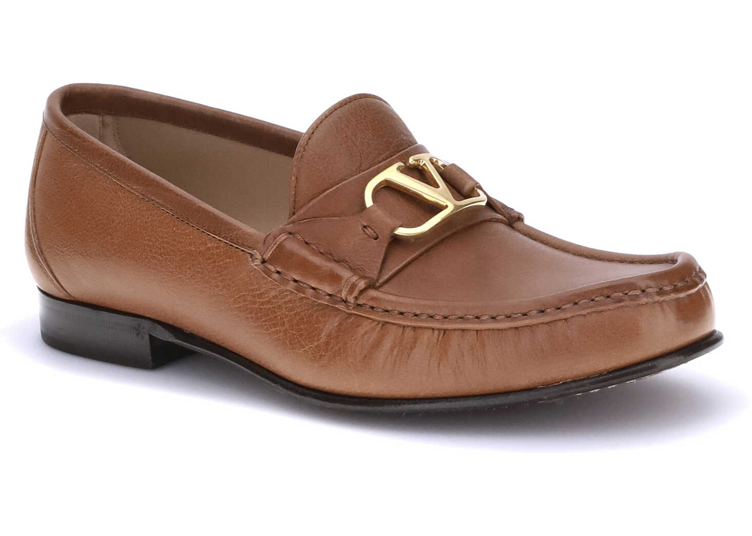 Valentino Garavani's leather Loafers with a round toe and gold metallic VLogo plaque applied to the front. The slip-on style offers a practical and comfortable fit, while the leather block heel adds a touch of elegance. Completing the design is the logo-embossed insole, a symbol of the maison's craftsmanship excellence.