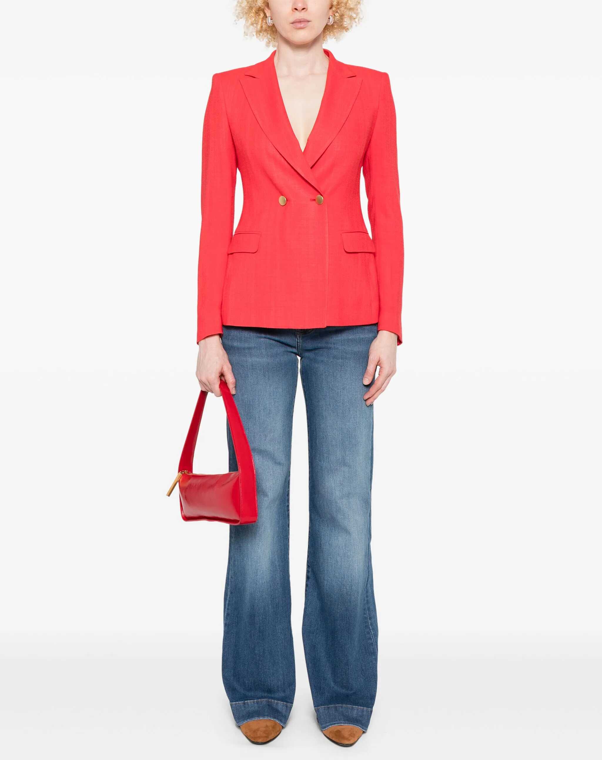 The Modern Jojo flare Jeans by 7For feature a flared cut and a modern silhouette. They feature a front zipper and button closure, two side welt pockets and two patch pockets on the back. Waist loops complete the design, making them ideal for looks with a contemporary, feminine flavor.