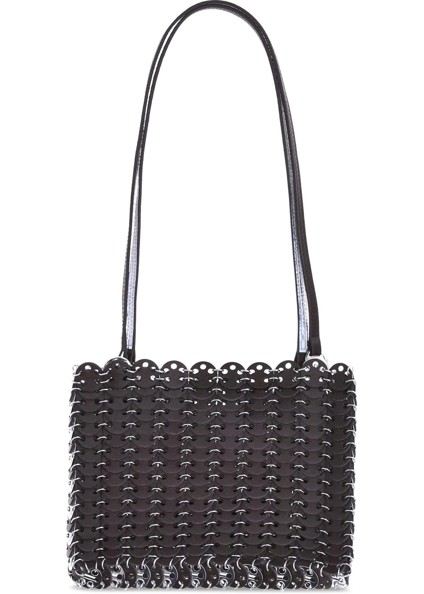 Rabanne's Flip 1969 Shoulder Bag is a style icon with a reversible design that offers versatility and modernity. Featuring two long, flat handles, it is comfortable to wear on the shoulder. The open top adds a touch of practicality, while the disc detail, the brand's iconic symbol, completes the look with a distinctive, contemporary accent. Perfect for those seeking a unique accessory with an innovative design.
