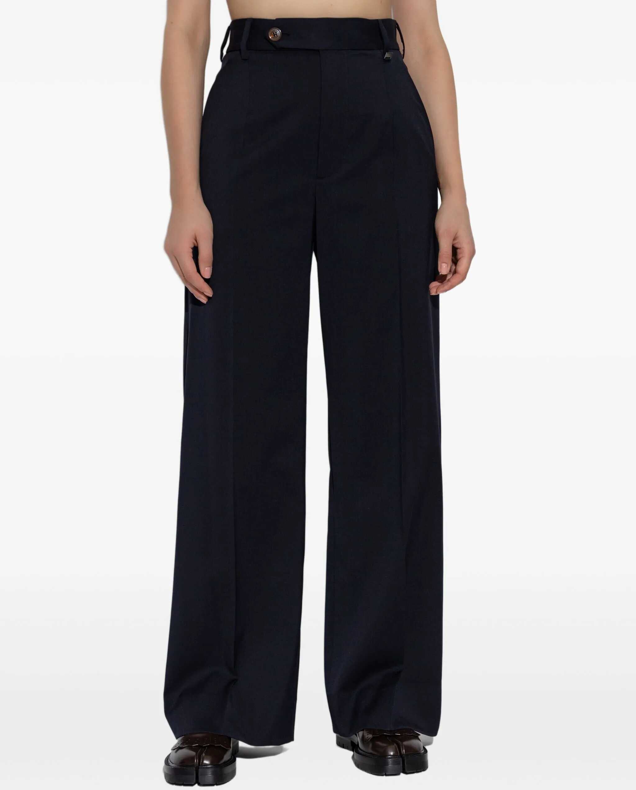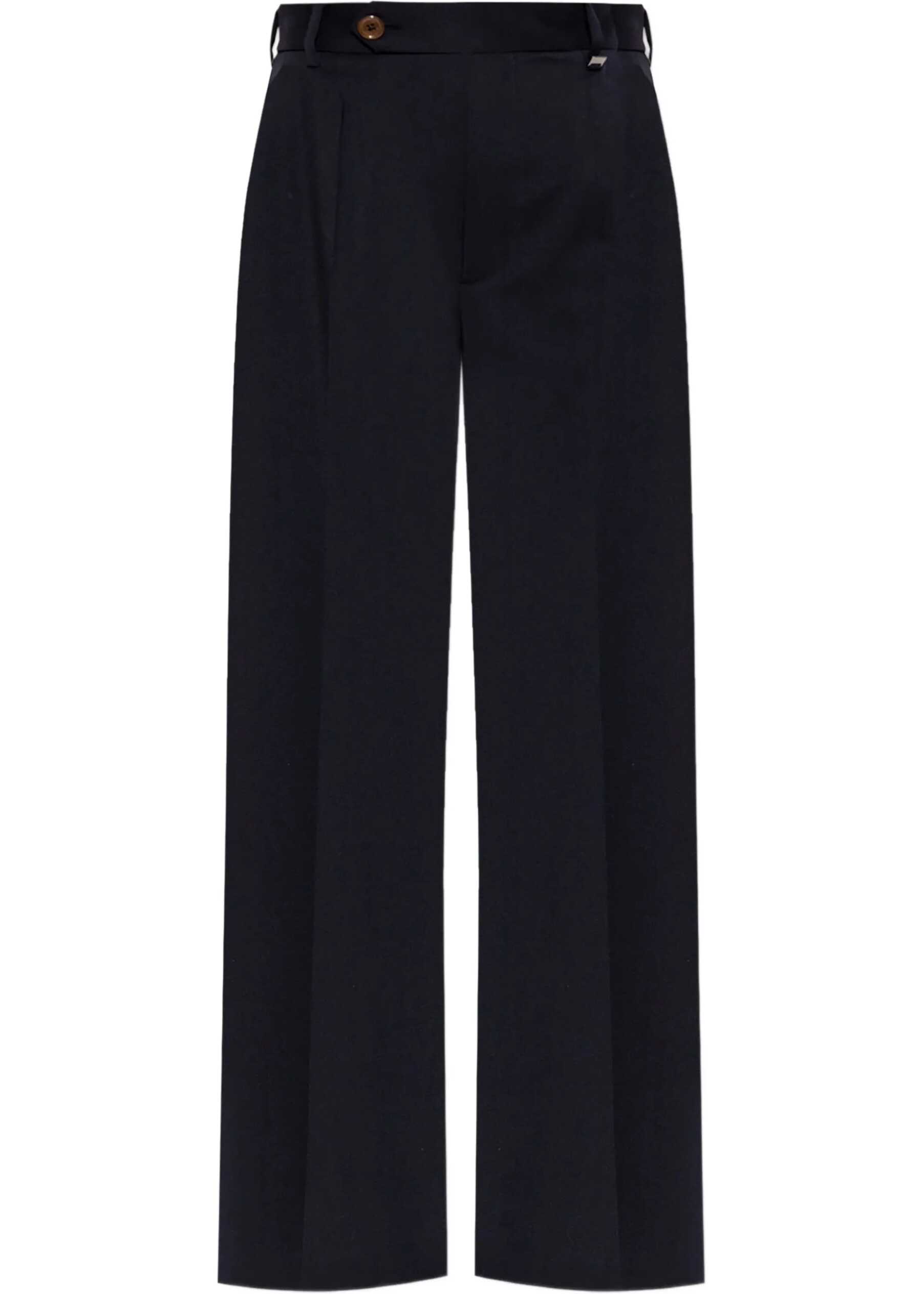Vivienne Westwood's virgin wool Lauren Pants have a wide-leg cut and sophisticated style. Featuring a front zipper and button closure, they have belt loops at the waist, two slash pockets at the hips and a welt pocket at the back. An elegant and contemporary piece, perfect for completing refined looks with a touch of character.