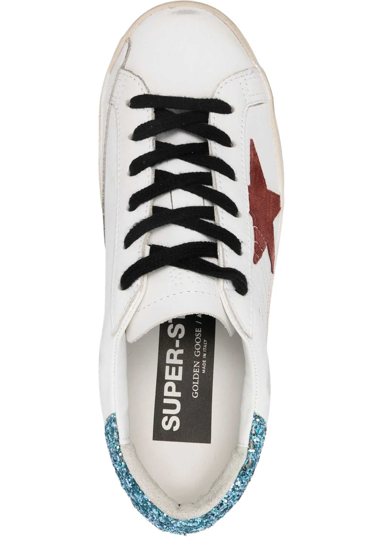 Golden Goose's leather Super Star Sneakers combine simplicity and elegance with distinctive details. The lace-up front closure and round toe provide comfort, while the flat sole adds a touch of versatility. The iconic star on contrasting side panel and the brand's press-on logo, both on the outer side panel and front tab, are the elements that make these sneakers easily recognizable and trendy.