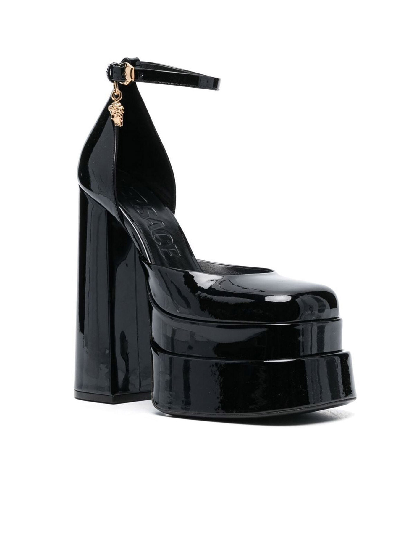 - Composition: 100% calf leather - Patent leather - Leather lining, insole, sole - Ankle side buckle fastening - Round toe - signature Medusa head - Heel 16 cm - Platform 6 cm - Made in Italy - MPN 1002005 1A05256_1B00V - Gender: WOMEN - Code: SHO VE 2 PM 01 O67 S3 T