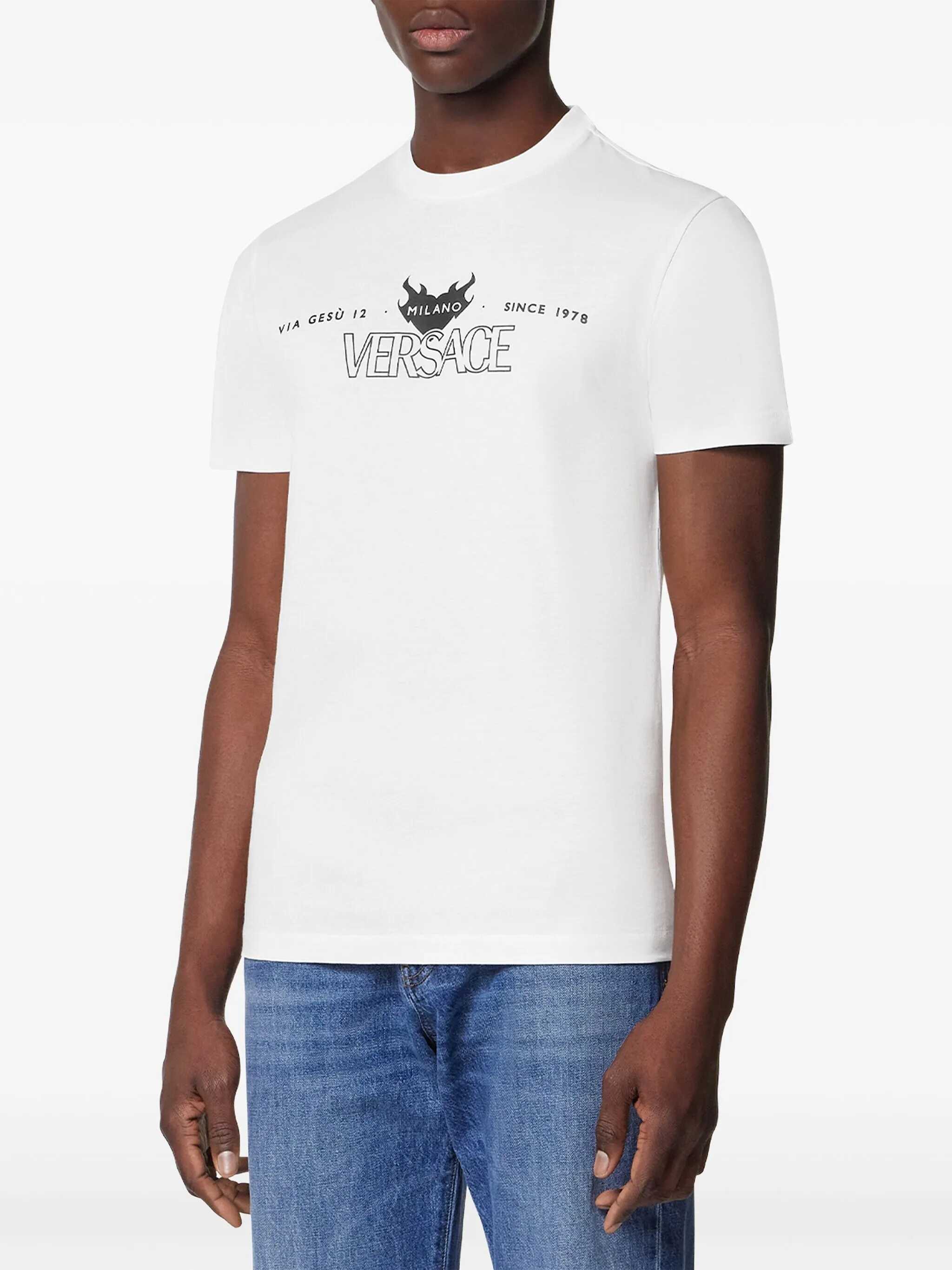 White cotton T-shirt by Versace with logo print, crew neck, short sleeves and straight hem - Versace - Short-sleeved T-shirt - White - Cotton - Logo print - Crew neck - Straight hem