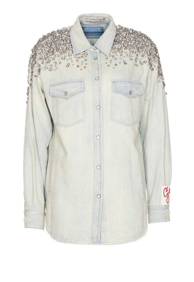 Golden Goose Denim Overshirt With Frontal Buttons Closure, Crystals And Strass Details On Shoulder, Frontal Pockets With Button Closure, Long Sleeves, Patch Logo On Cuffs, US SIZE