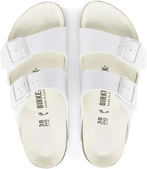 The Arizona BS 1019061 in Triples White is a stylish and versatile sandal that embodies Birkenstock’s commitment to comfort and quality. The upper is made of Birko-Flor® with a nubuck-like texture – durable, skin-friendly, and easy to care for. Featuring an anatomically shaped cork-latex footbed, the sandal supports natural foot movement and cushioning. Two adjustable metal buckles ensure a personalized fit, making them a go-to option for everyday summer wear.