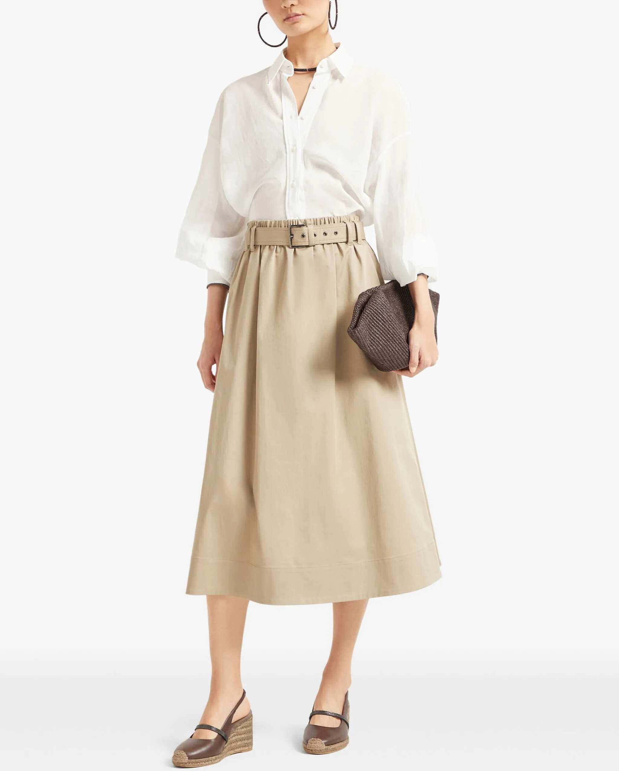 Wide Skirt by Brunello Cucinelli features an elasticized waistband for comfort and fit. Matching adjustable and removable belt offers added customization to the look. The two side welt pockets add a practical and stylish touch. An elegant and versatile garment, ideal for creating sophisticated and modern looks.