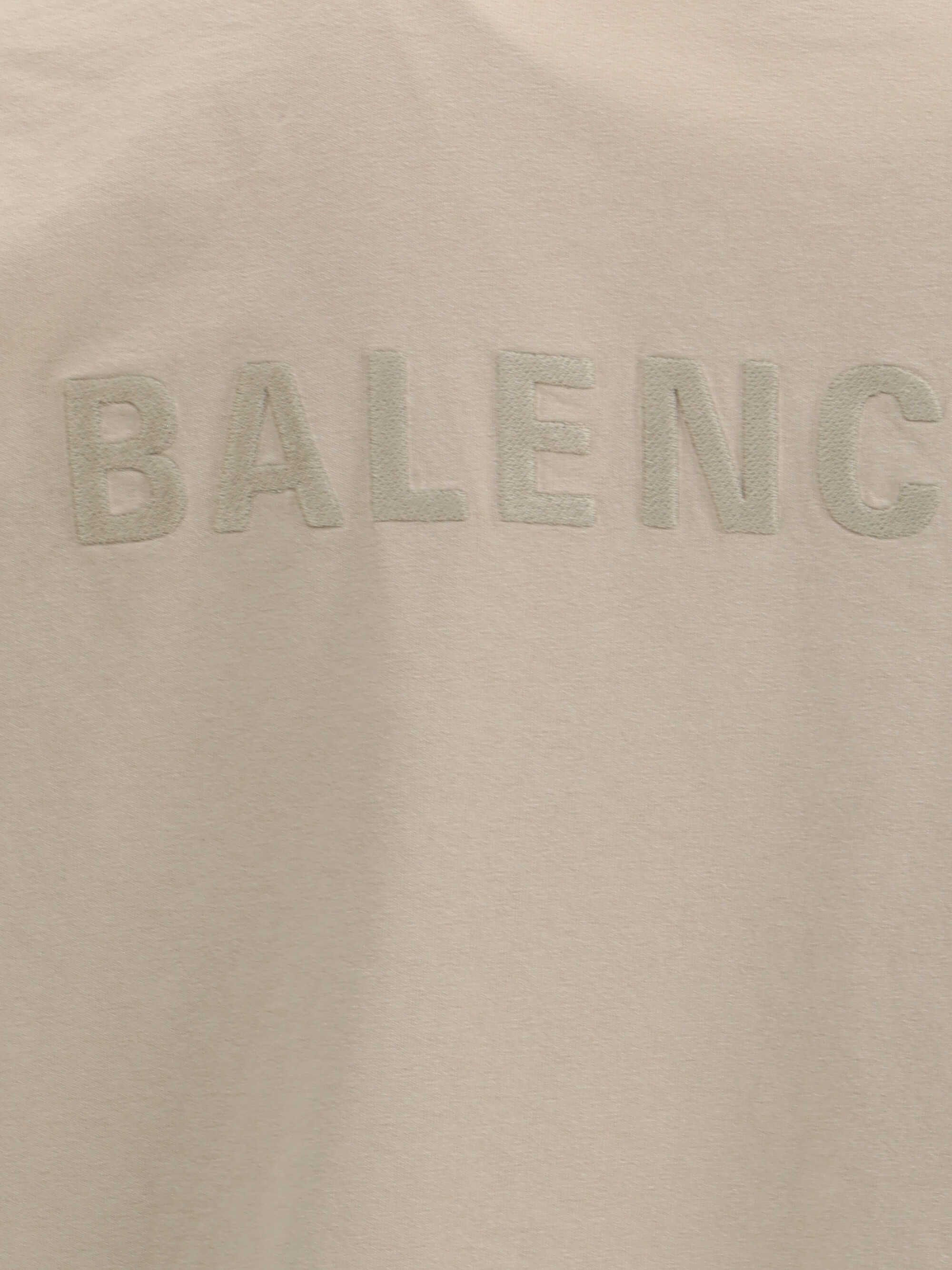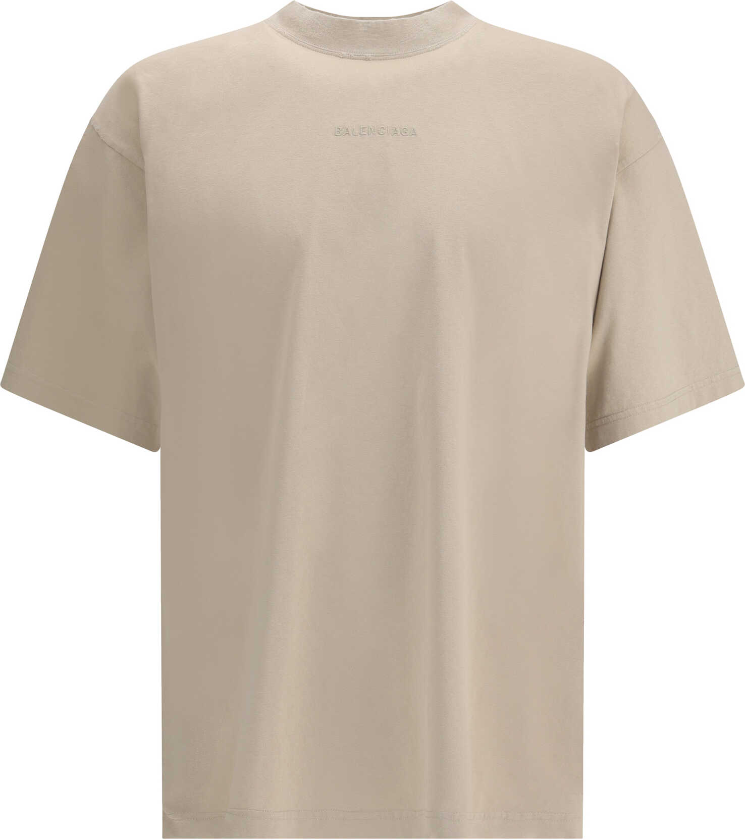Balenciaga's Logo T-Shirt features a ribbed crew neck with a distressed effect, adding a worn-in touch to the design. The iconic tone-on-tone stitched logo on the front completes the garment with understated elegance.