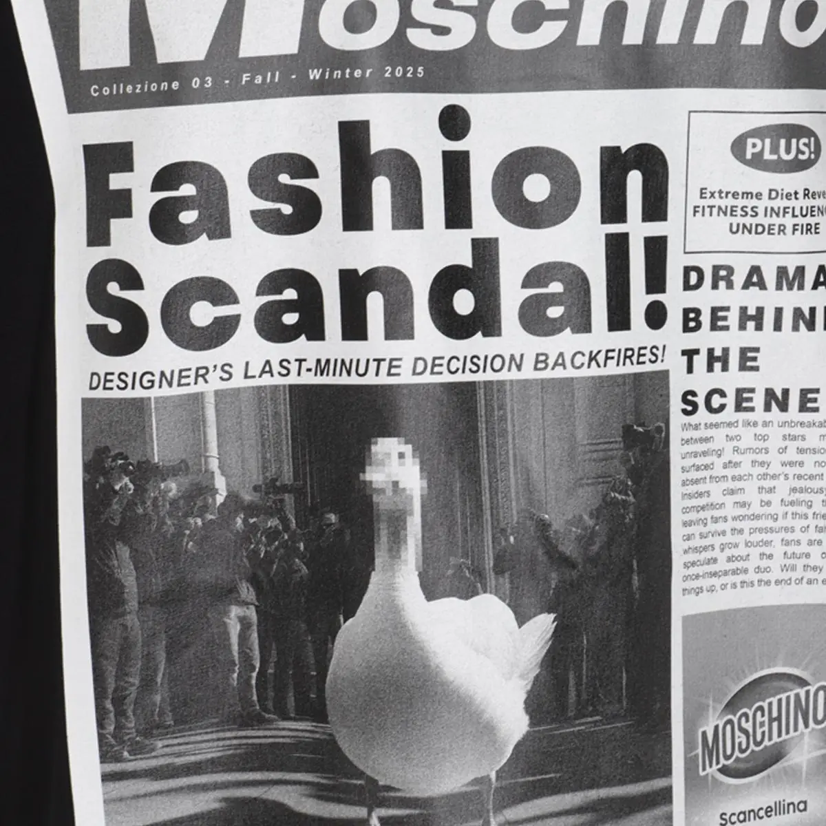 Black cotton t-shirt from Moschino featuring round collar, short sleeves, frontal print and regular vestibility.
