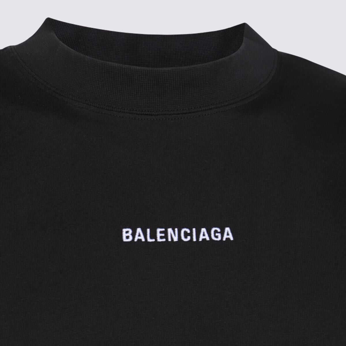 Black cotton t-shirt from Balenciaga featuring round collar, short sleeves, printed logo and regular vestibility.
