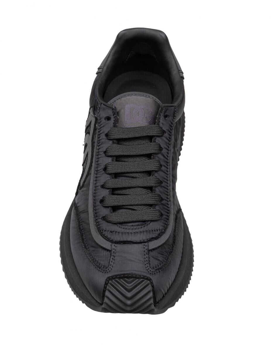 Nylon and suede sneakers Black color Lace-up closure Contrasting side logo Light rubber sole Logoed tongue Fussbet with fire logo