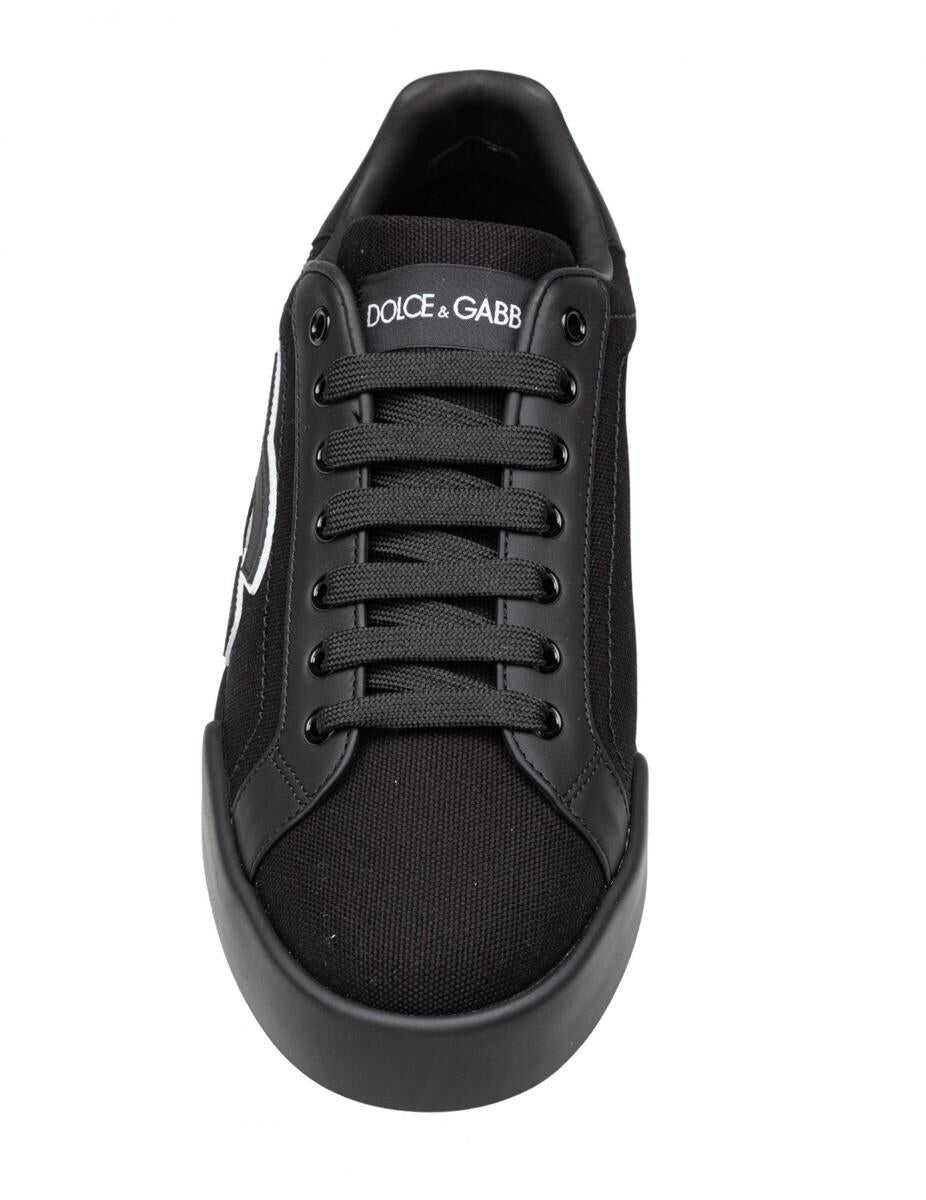 Canvas and Calfskin Sneaker Black Color Black Portofino Light Sole EVA Sole Felt Insole Footbed in polyurethane wrapped in leather personalized with fire stamp DG logo applied Item equipped with black cotton bag and box in cellulose fiber from recycled paper Sole height 15 mm