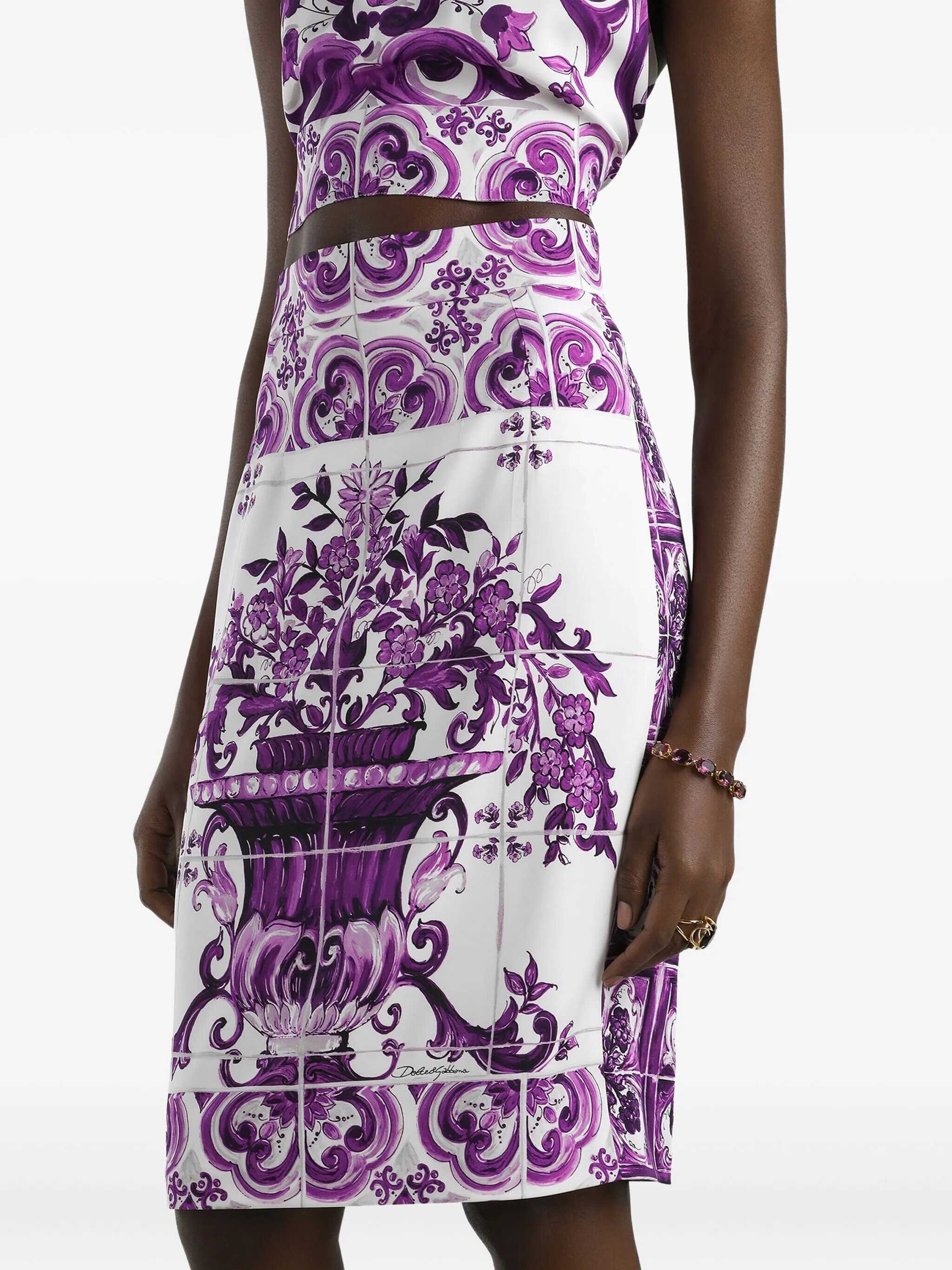 Midi skirt in silk with all-over 'Maiolica' print, longuette model, zip and back split closure, solid silk lining.