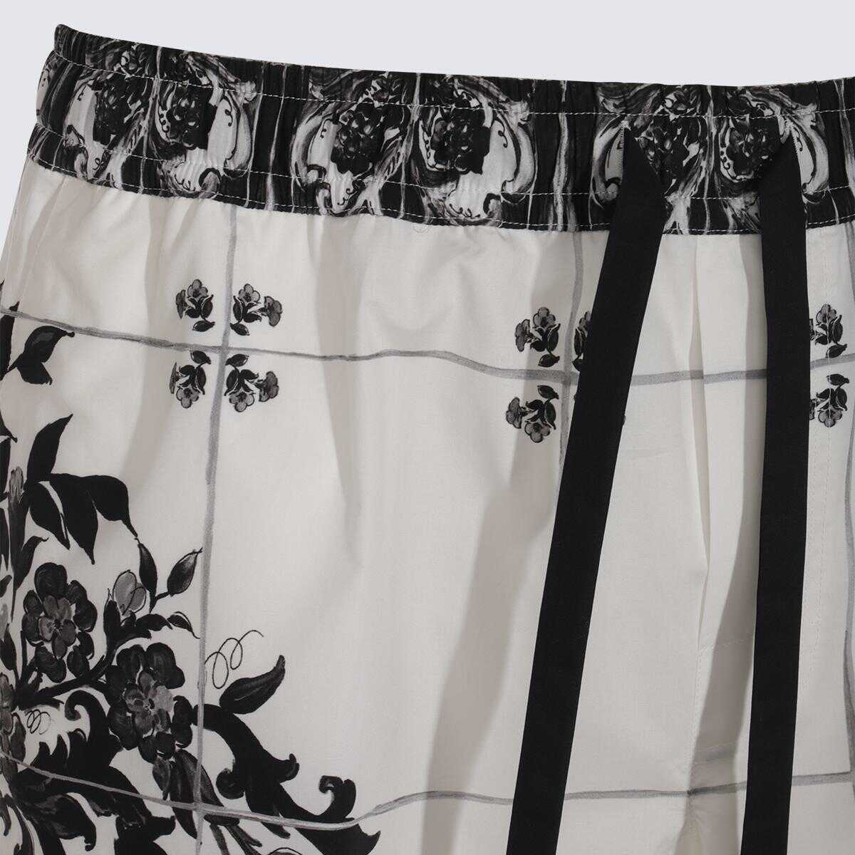 White and black cotton shorts from Dolce & Gabbana featuring elasticizated waistband, drawstring, all-over print and regular vestibility.