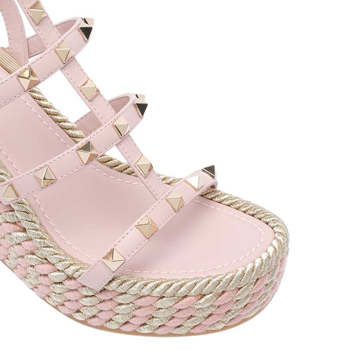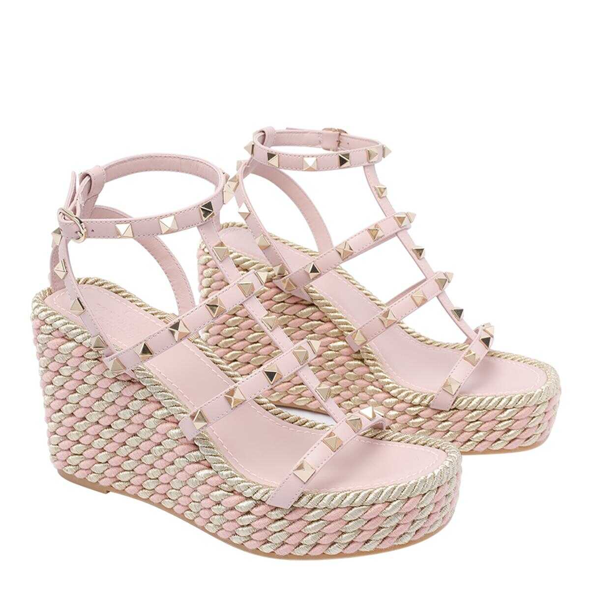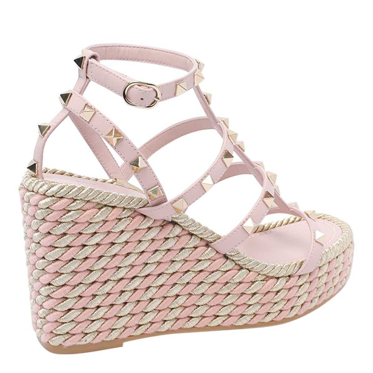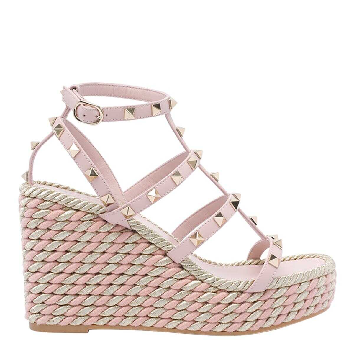 Valentino Garavani Pink Rockstud Wedged Sandals, Lateral Buckle Closure, Studs Allover, Leather Upper, Heel 9,5 cm