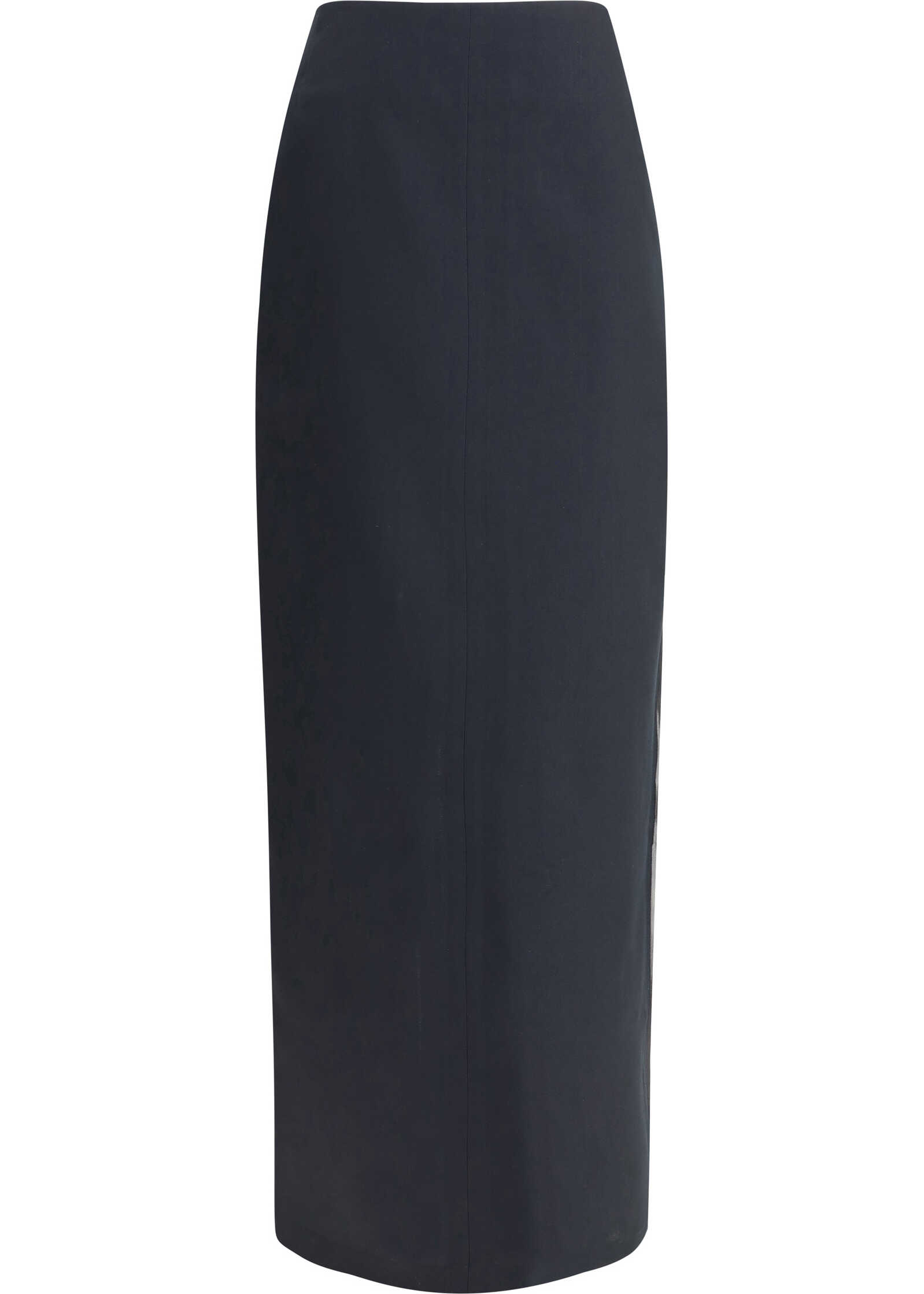 Di Stavnister's Chiarra Long Skirt features a structured, minimalist design. Made of a rigid fabric that enhances the silhouette, it is defined by a back slit that adds movement and femininity. A back zipper closure completes the design with a clean, minimalist finish.