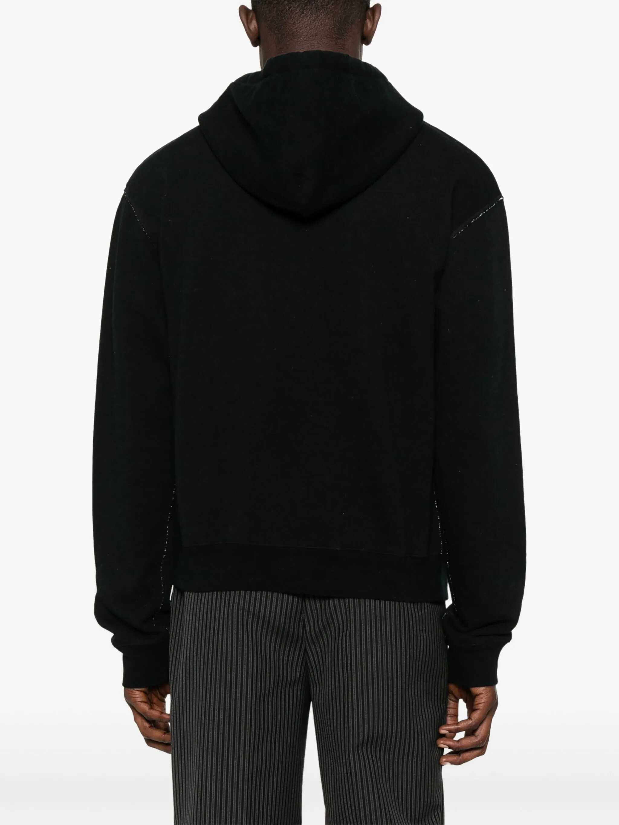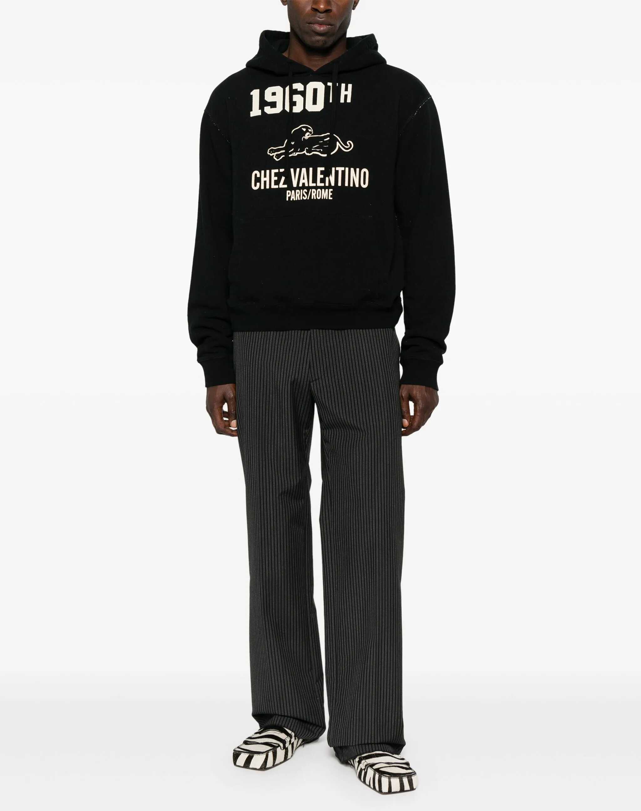 Sweatshirt in black cotton blend. Features long sleeves, front Chez Valentino embroiderycream color, a single central pocket, a subtle "used" effect, and a hood.