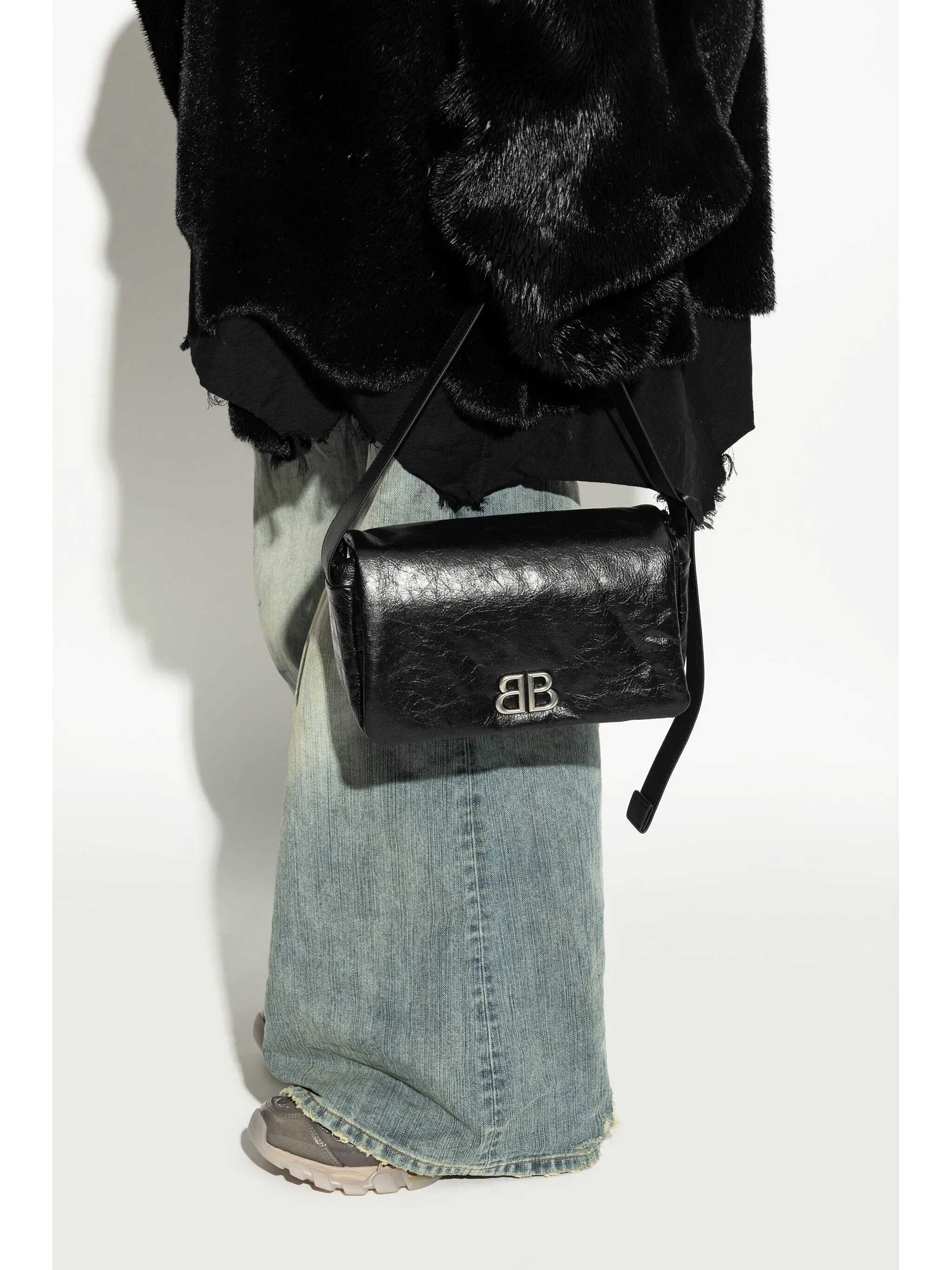 Black leather small Monaco crossbody bag Width: 25 cm Height: 15,5 cm Depth: 8,5 cm Min shoulder strap length: 10 cm Max shoulder strap length: 58 cm