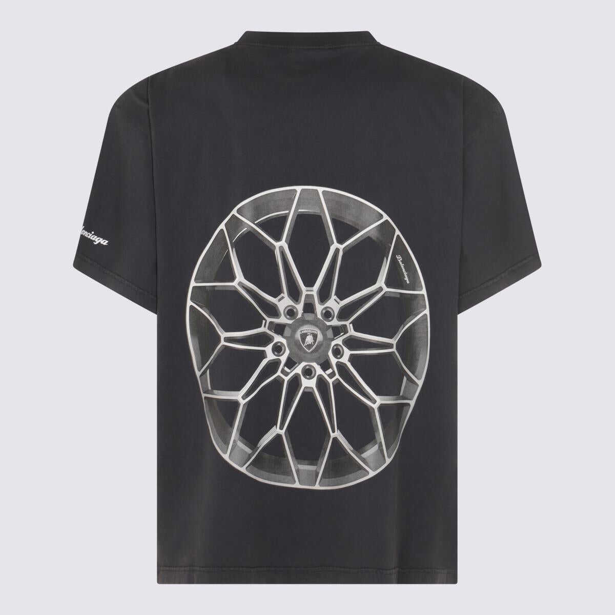 Black cotton t-shirt from Balenciaga featuring round collar, short sleeves, print and regular vestibility.