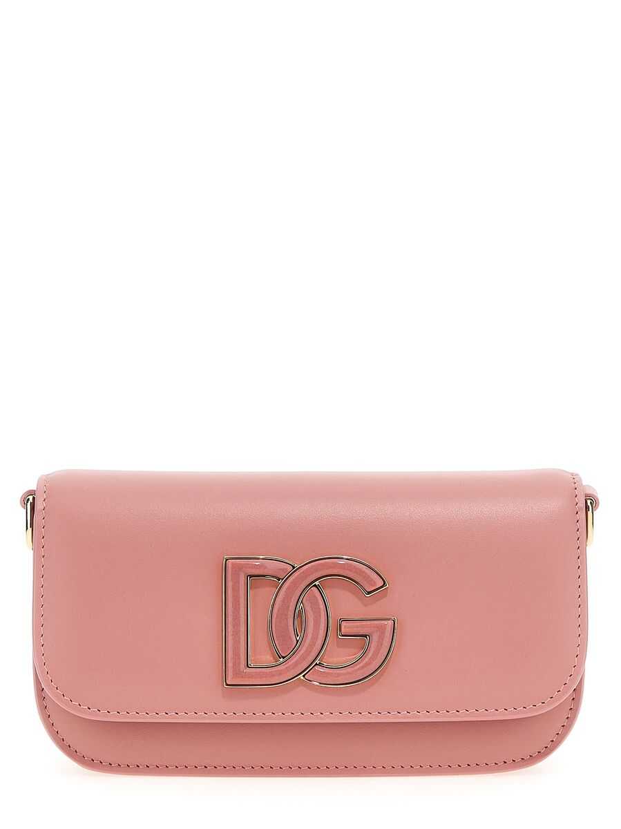 Pink leather top handle bag from Dolce&Gabbana featuring frontal fastening, top handle, logo, chain and pocket.