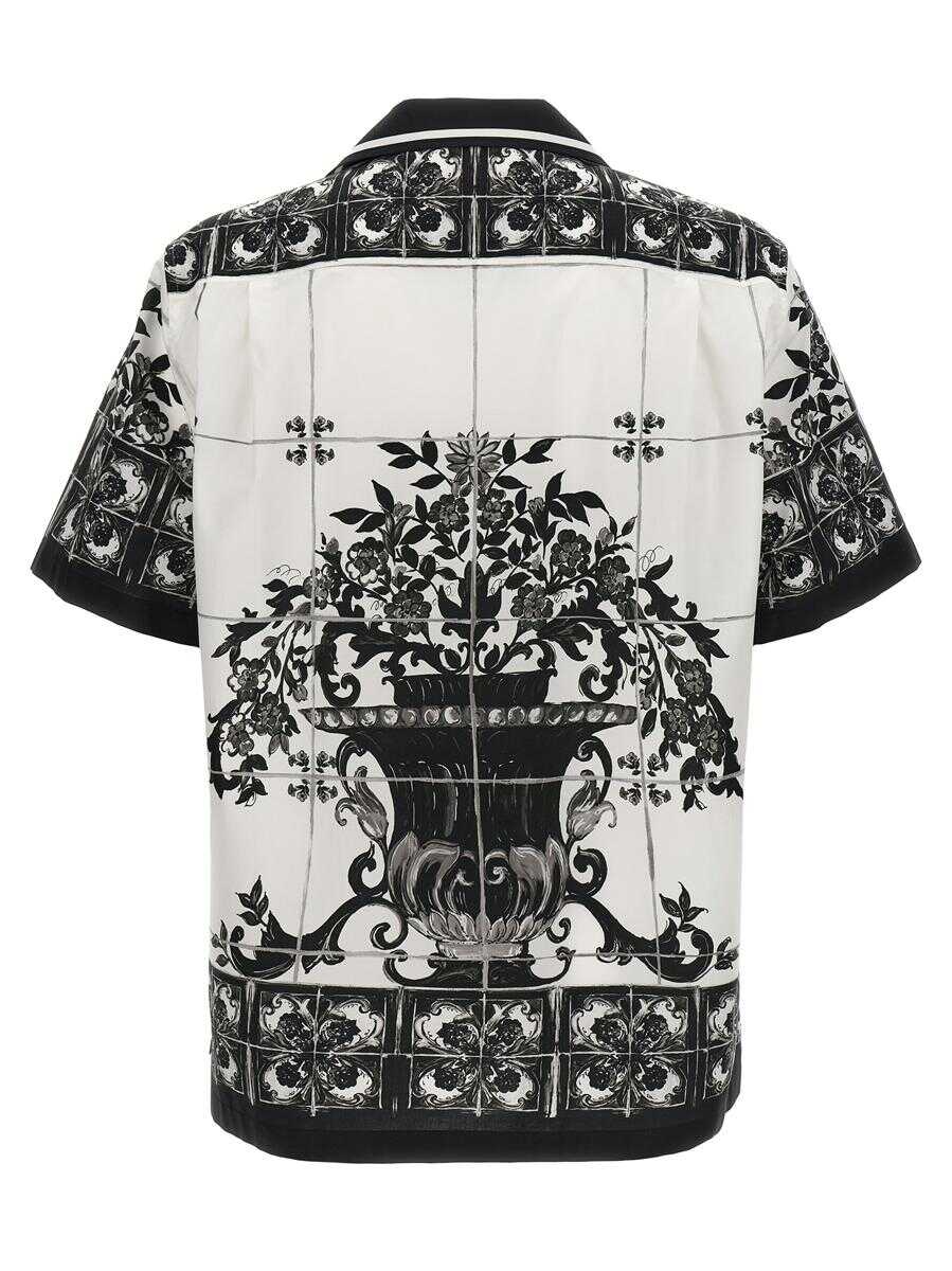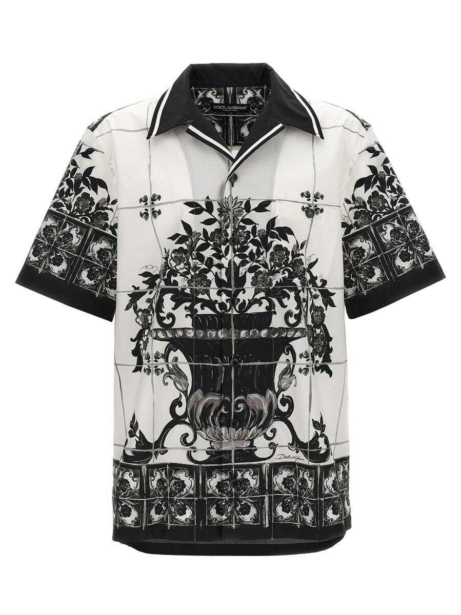 'Hawaii' cotton poplin shirt Maiolica print, front button closure, breast pocket, short sleeves, side slits.