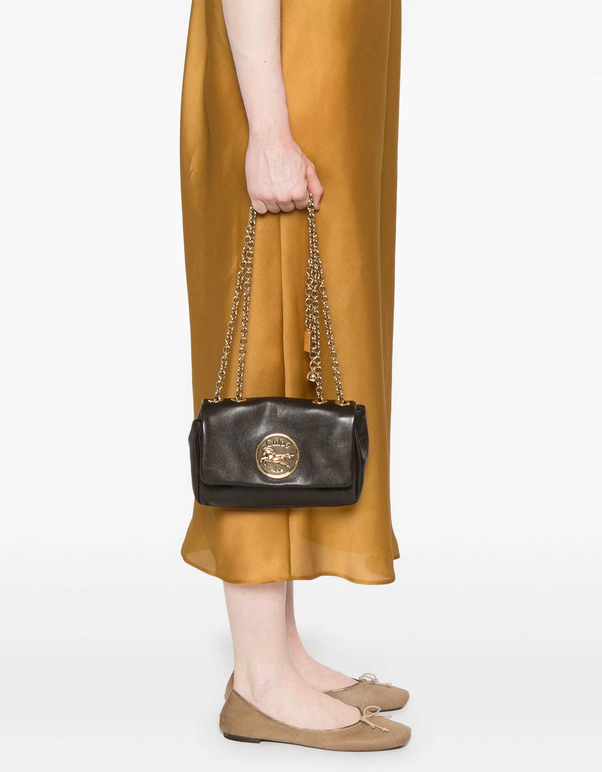 Chloé's Heritage Shoulder Bag is a refined and versatile accessory made of soft grained leather. Its aesthetic is embellished with a metallic logo detail on the front, underscoring its design identity. The metal chain shoulder strap offers flexibility of use, being able to be worn either single for a longer look or double for a more compact effect. The practical and secure closure is by means of a magnetic button.
