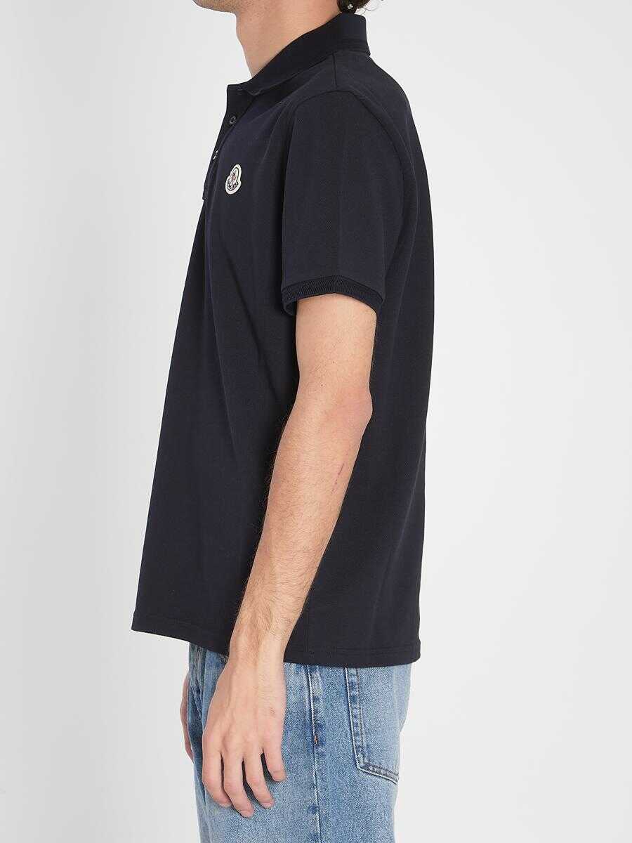 navy cotton polo shirt. features a classic polo collar, mother-of-pearl buttons, short sleeves, and a logo patch. regular fit.