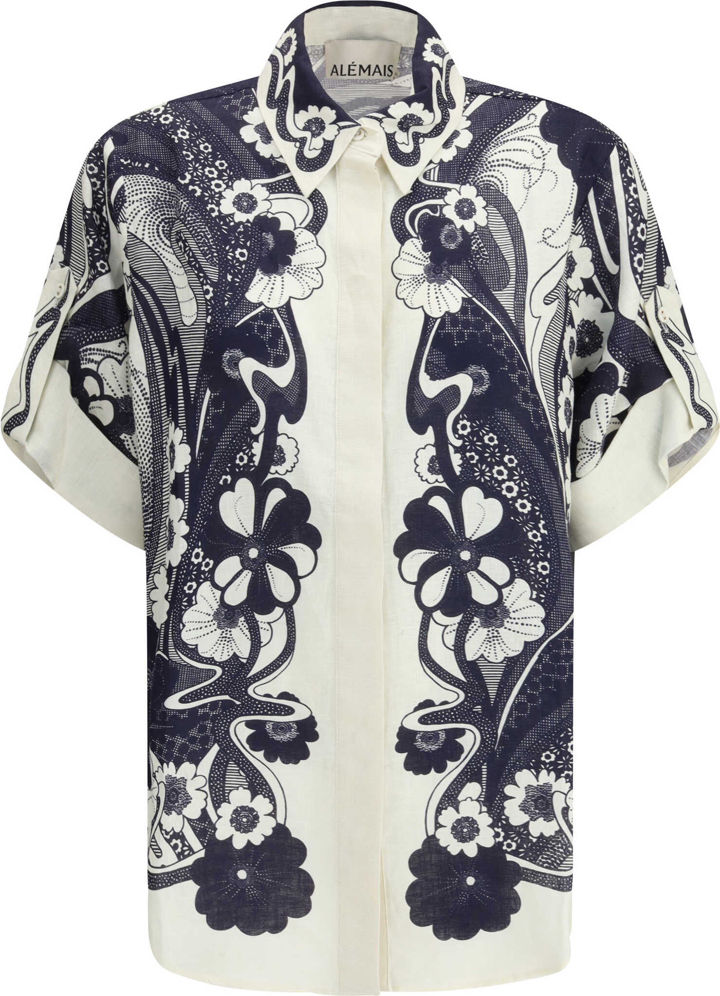 The Mickey Shirt by Alemais is a refined design that combines tailored details with a relaxed style. The pointed collar with rise gives structure and definition to the silhouette, enhancing the collar with a modern touch. Turn-up sleeves, adjustable in length, add versatility and a casual accent, perfect for a casual yet polished look. The hidden button placket, finished with fabric-covered buttons, completes the design with elegance and restraint. An ideal shirt for those seeking originality and sophistication in everyday wear.