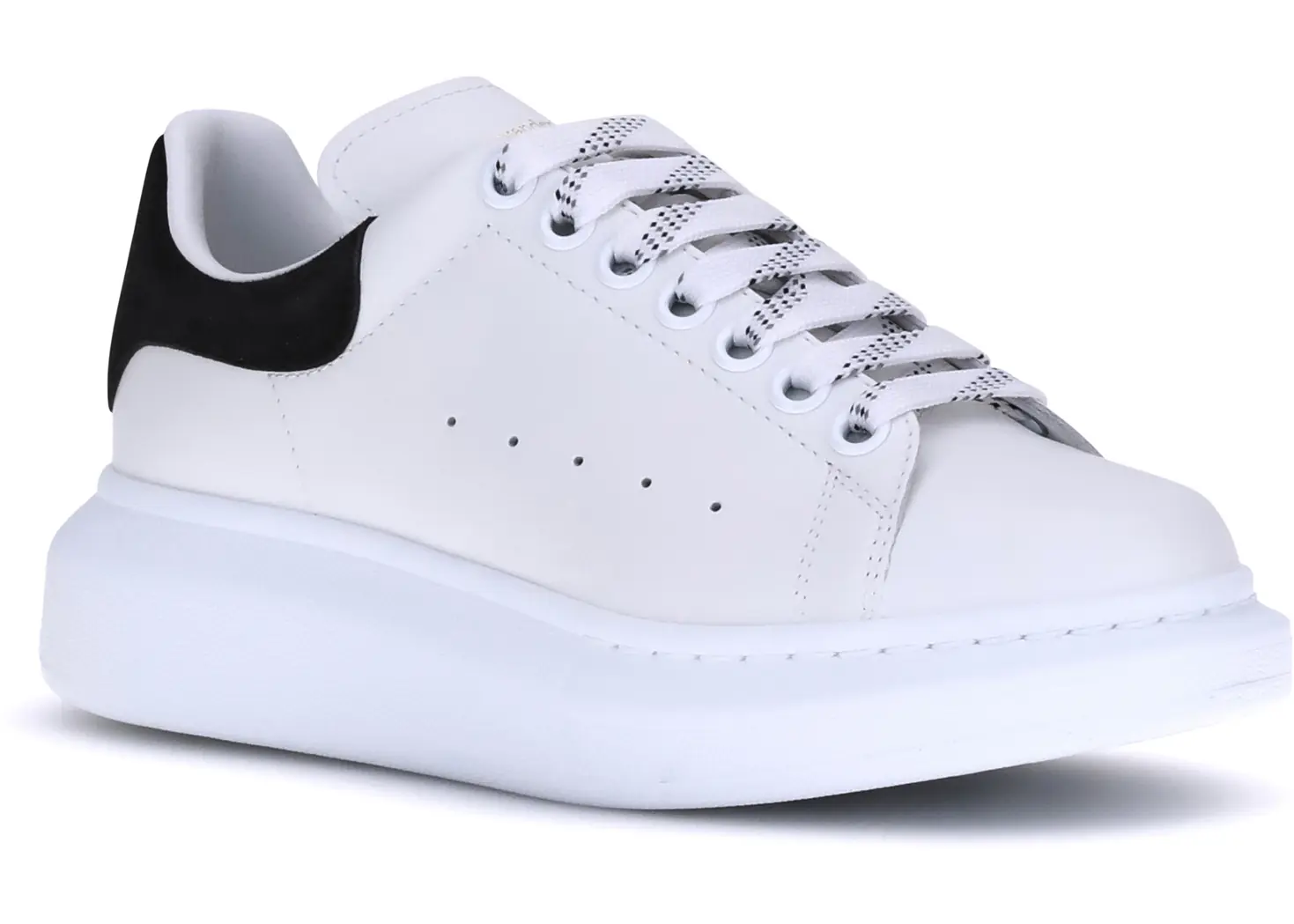 Alexander McQueen's leather Sneakers are a distinctive piece that combines elegance and boldness in a contemporary design. They feature a front lace-up closure for a comfortable and adjustable fit, while the round toe ensures a classic and versatile look. The press-studded logoed front tab and contrasting logoed heel label add iconic details that recall the brand's authenticity. The platform sole not only gives added height, but also adds a bold, modern touch to the design.