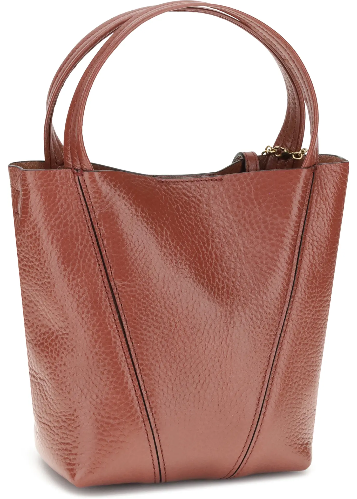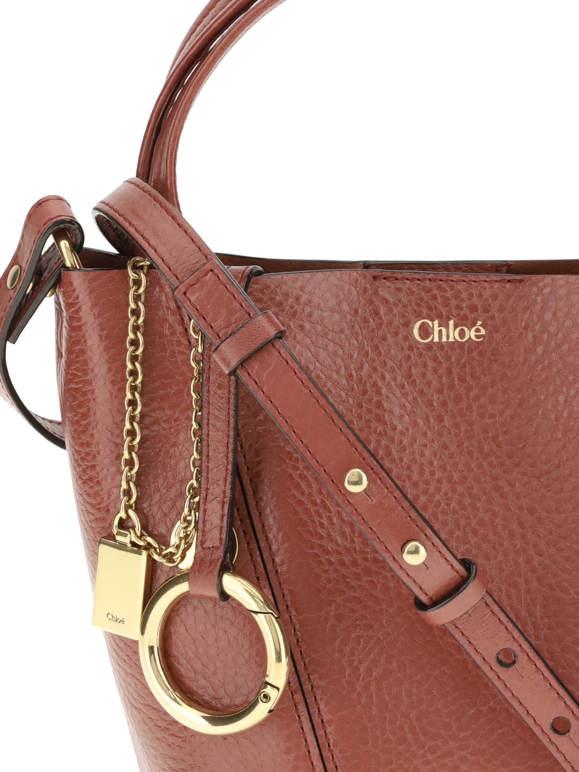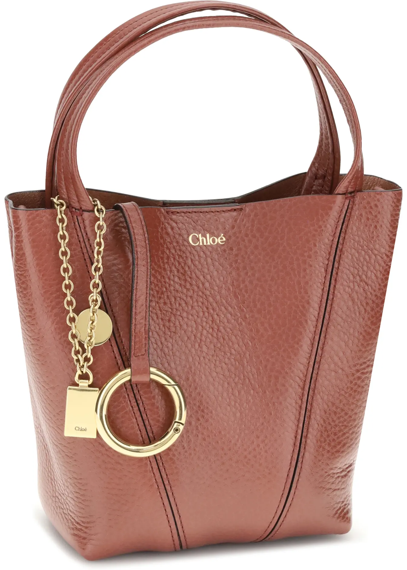 The Spin Shoulder Bag by Chloé, crafted by shiny grained leather, features an elegant design with two flat top handles and an adjustable shoulder strap. The closure is secured by a magnetic button, while the detail of the hanging chain with Chloé medals and the emblematic Horse adds a distinctive touch. The iconic monogram press-stamped on the front stands out, and inside there is a single compartment, for a minimalist and functional aesthetic.