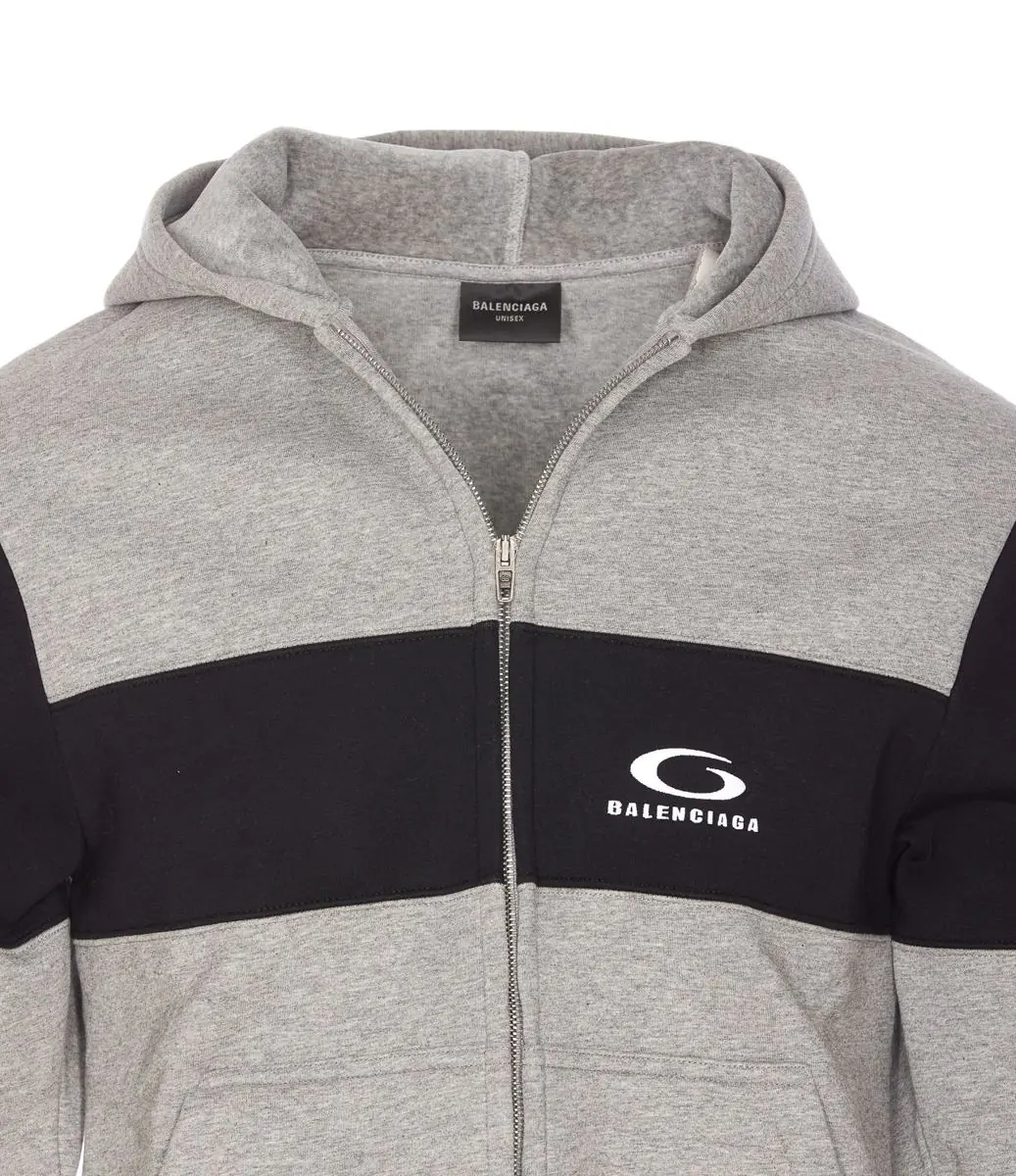 Balenciaga Grey Hoodie With Zip Closure, Embroidered Logo On The Front, Pockets, US SIZE