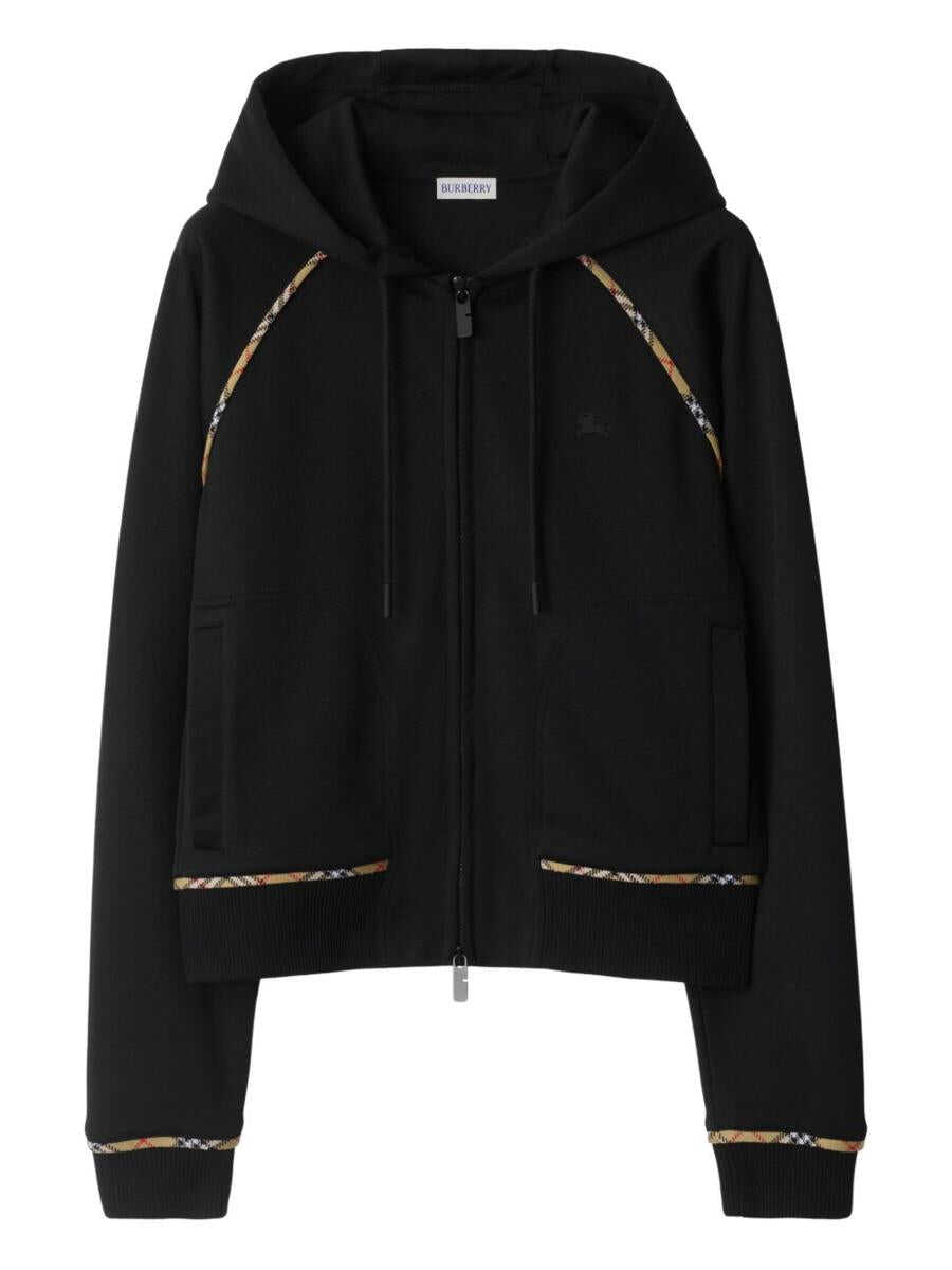 black front two-way zip fastening two side welt pockets drawstring hood signature Equestrian Knight motif