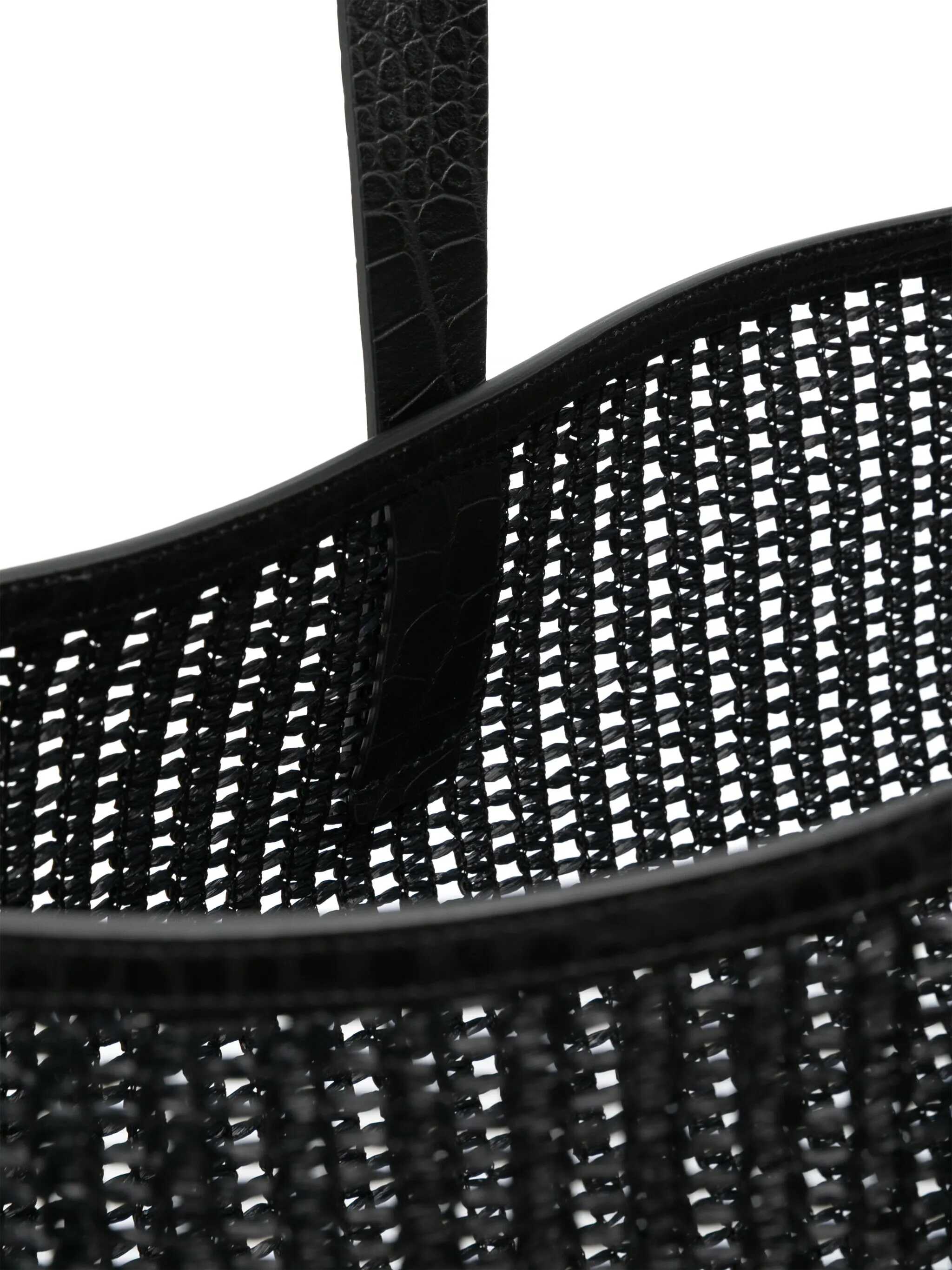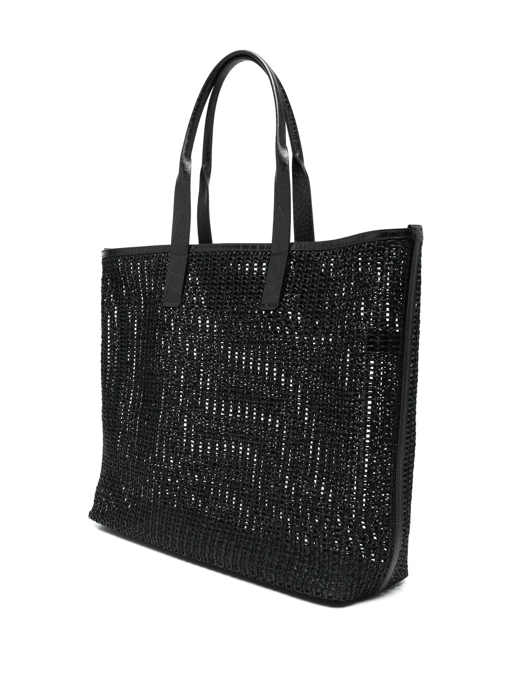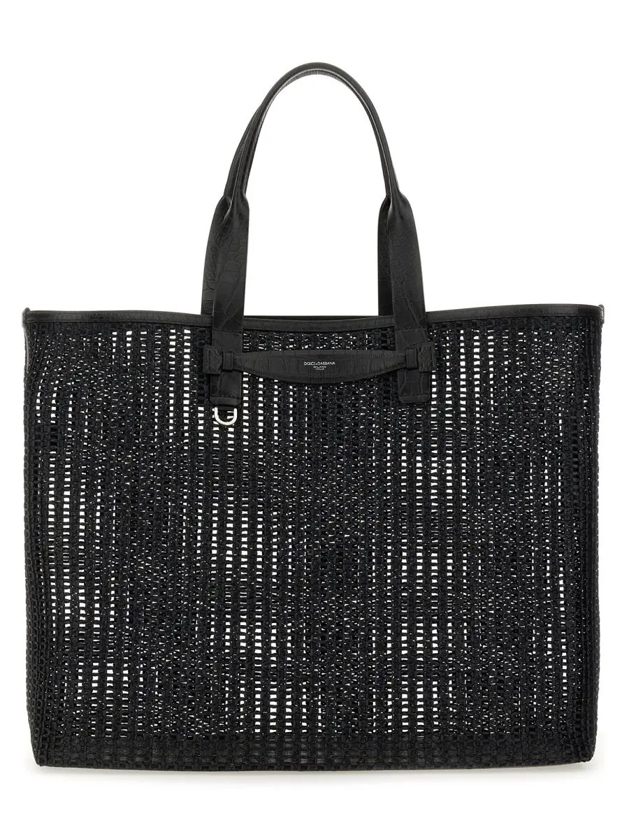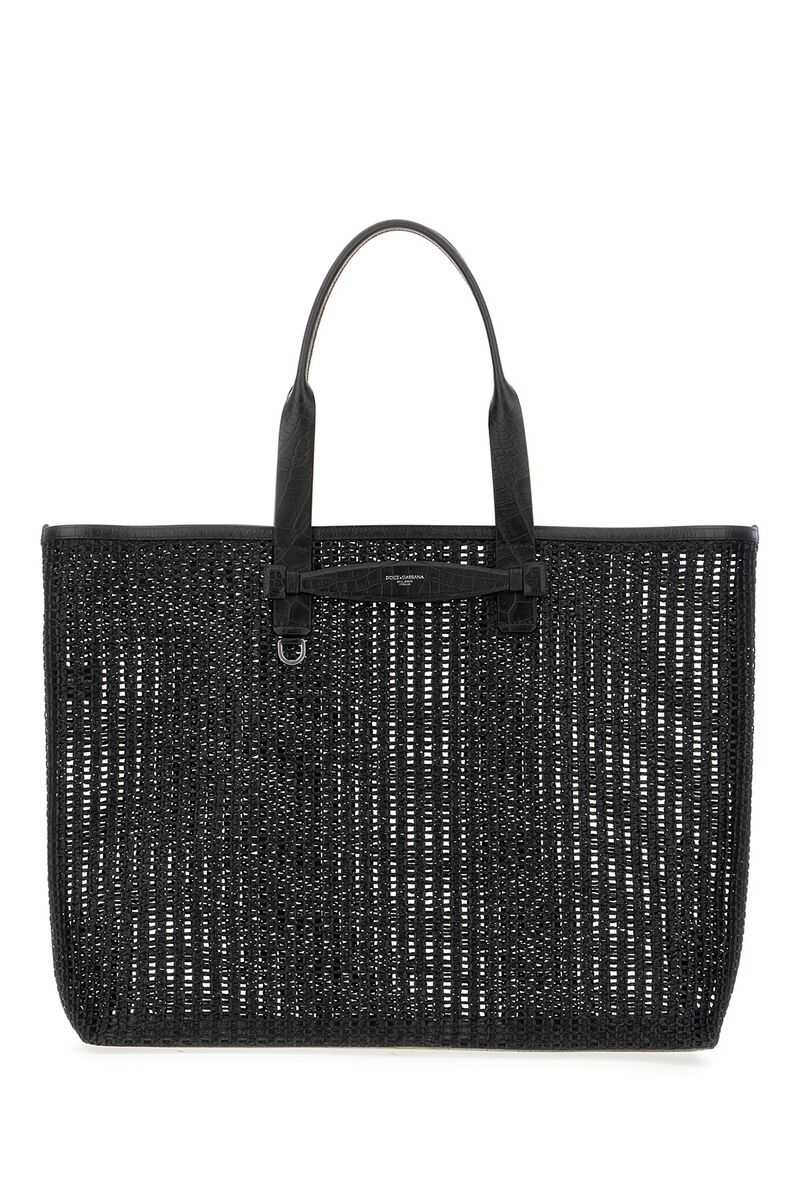 Black cotton totes from Dolce&Gabbana featuring top handles, frontal logo, pocket and trasparence.