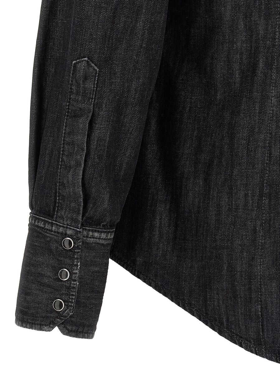 Dsquared2 shirt crafted from faded black cotton denim. Featuring a classic collar, front snap-button closure, flap pockets on the chest, long sleeves with buttoned cuffs, and a rounded hem.