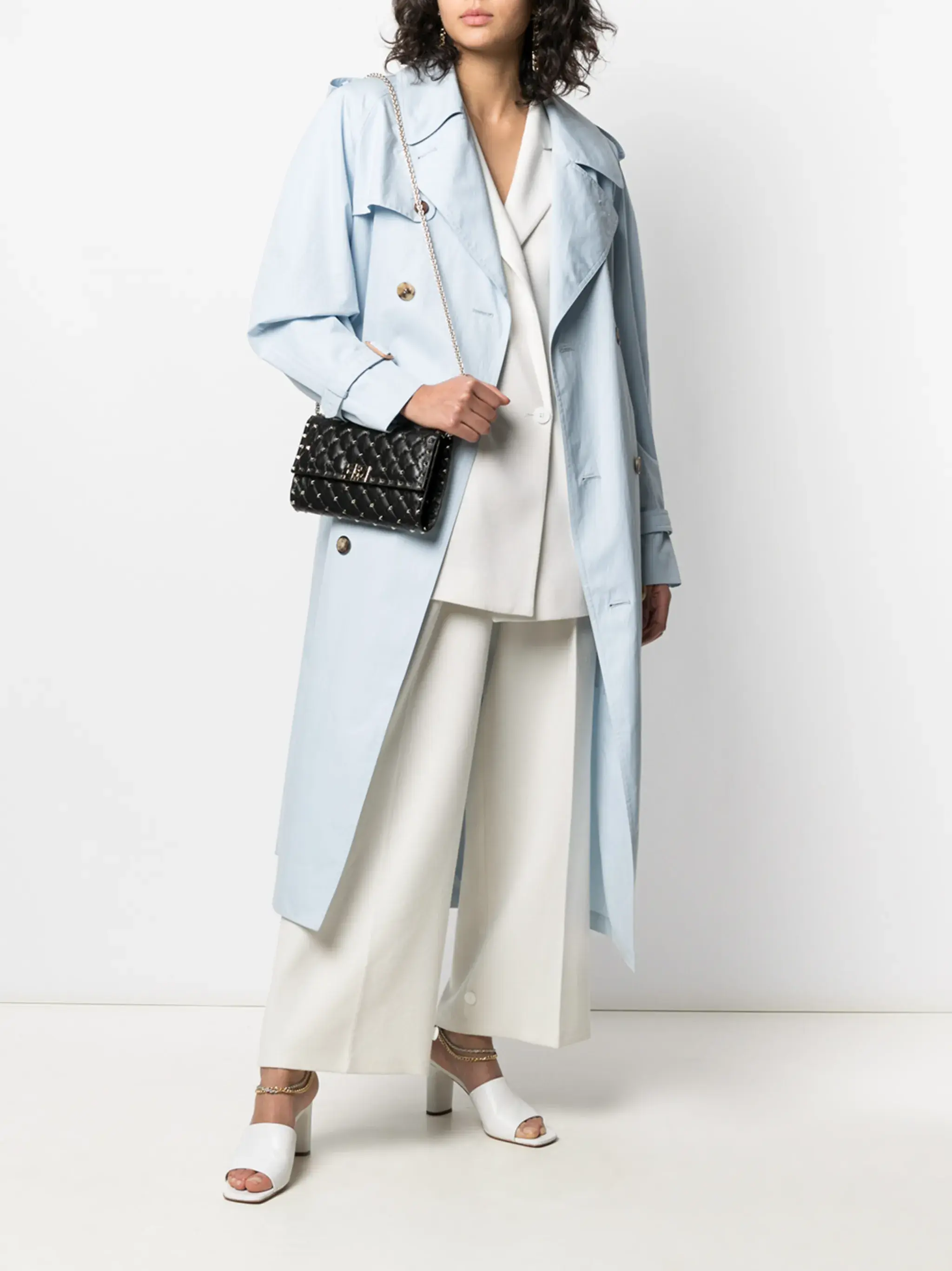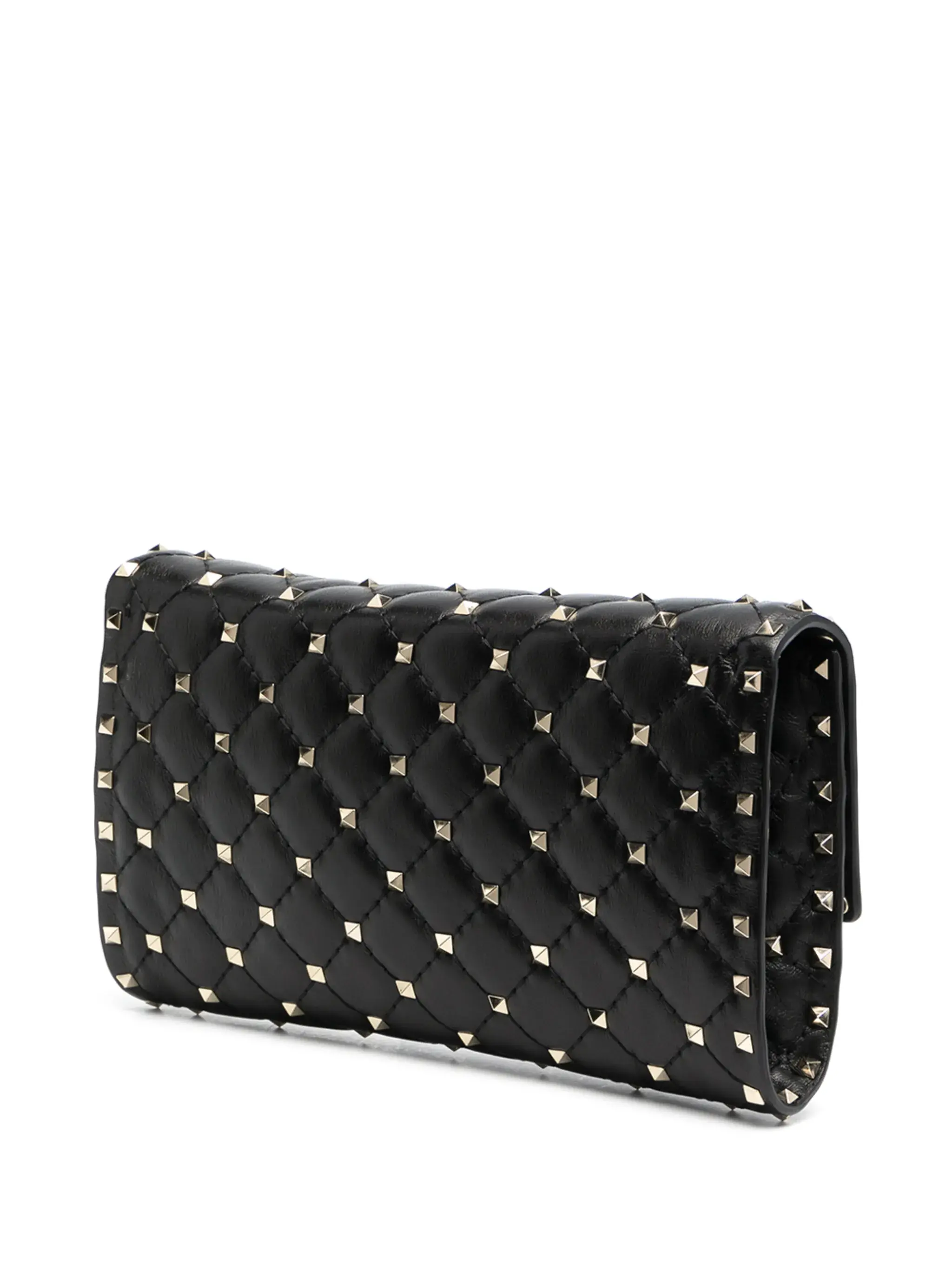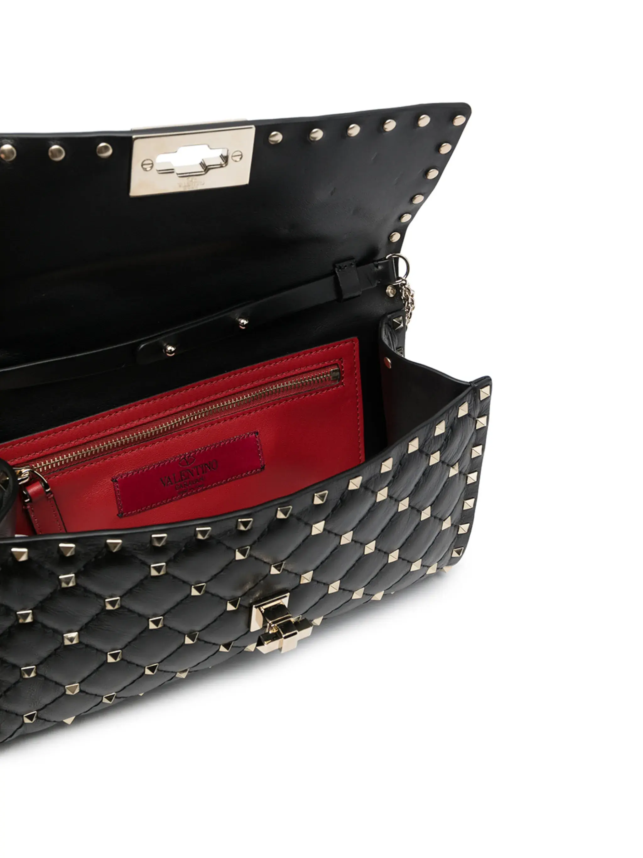 Features black leather quilted design characteristic Rockstud detail removable shoulder strap with chain flap twist closure Composition Exterior: 100% lambskin, 100% metal, 100% zamak