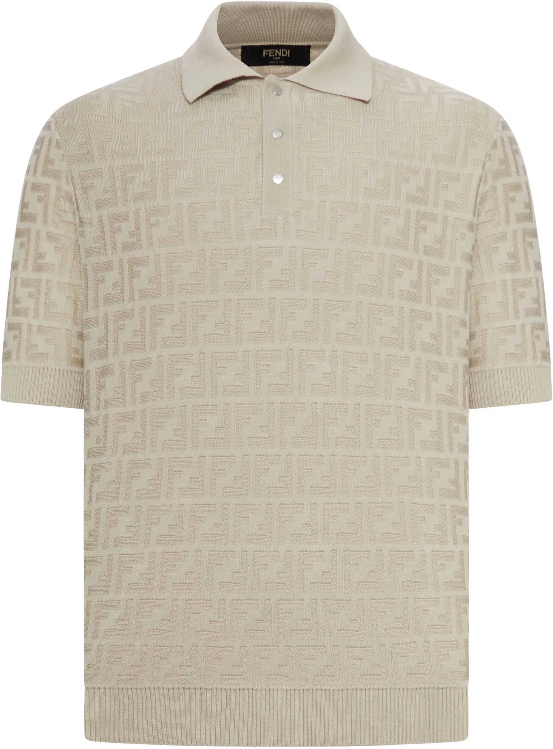 Cotton Polo Shirt by Fendi features a fine knit weave with iconic embossed FF pattern. The classic collar and front snap-button closure lend an elegant and contemporary touch. The ribbed hem completes the garment, ensuring a defined fit and distinctive style.
